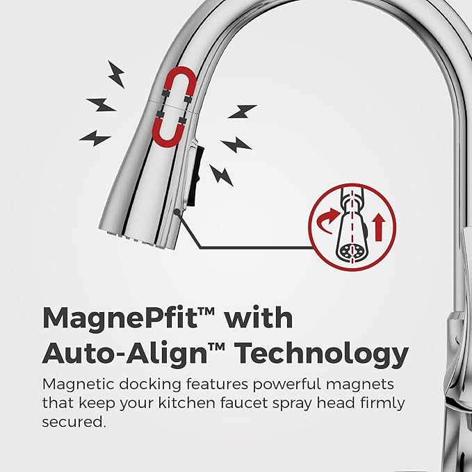 - ADVANCED SPRAY HEAD DOCKING – MagnePfit uses powerful magnetic docking to keep your spray head firmly secured; Auto-Align ensures your spray head aligns correctly all on its own
