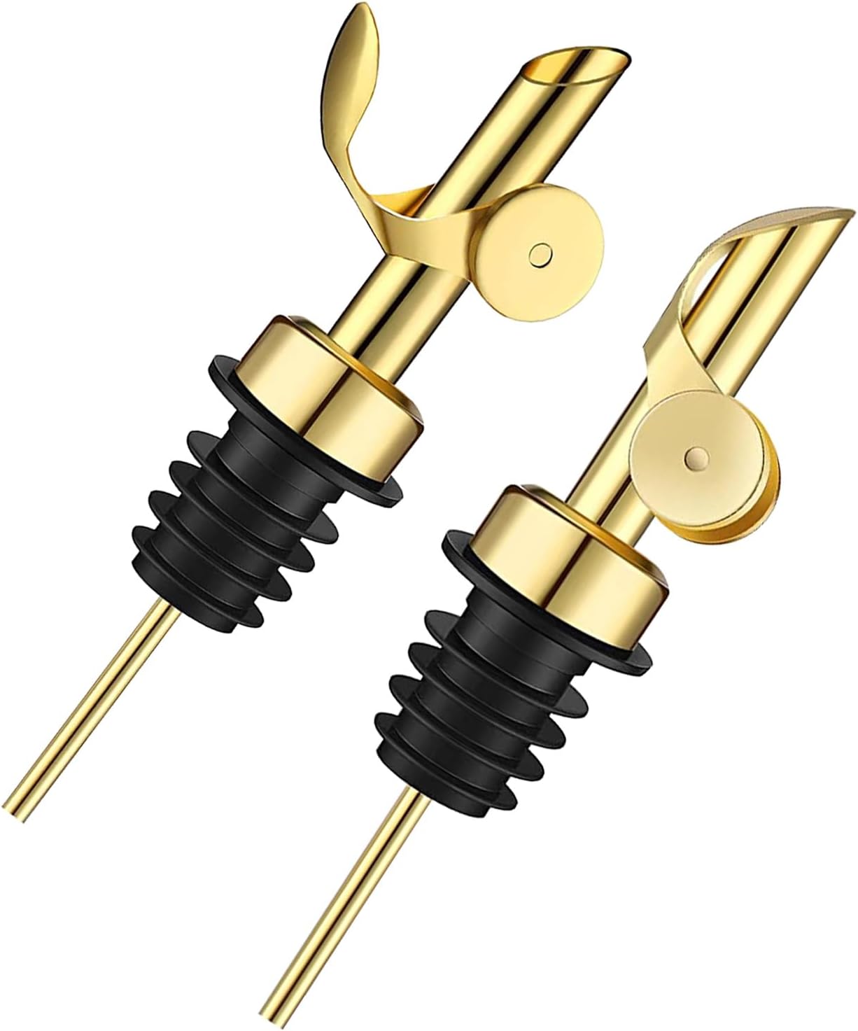 - Keep Oils and Liquor Fresh: High-quality metals oil dispenser keep oils fresher for longer than ever before. automatic oil spout suitable for most classic glass bottle necks, such as wine bottles, whiskey bottles, olive oil bottles,syrup bottles and other sealing bottle. gold pour spouts for liquor bottles are the most popular essential tools in home, kitchen, restaurants, bar accessories.