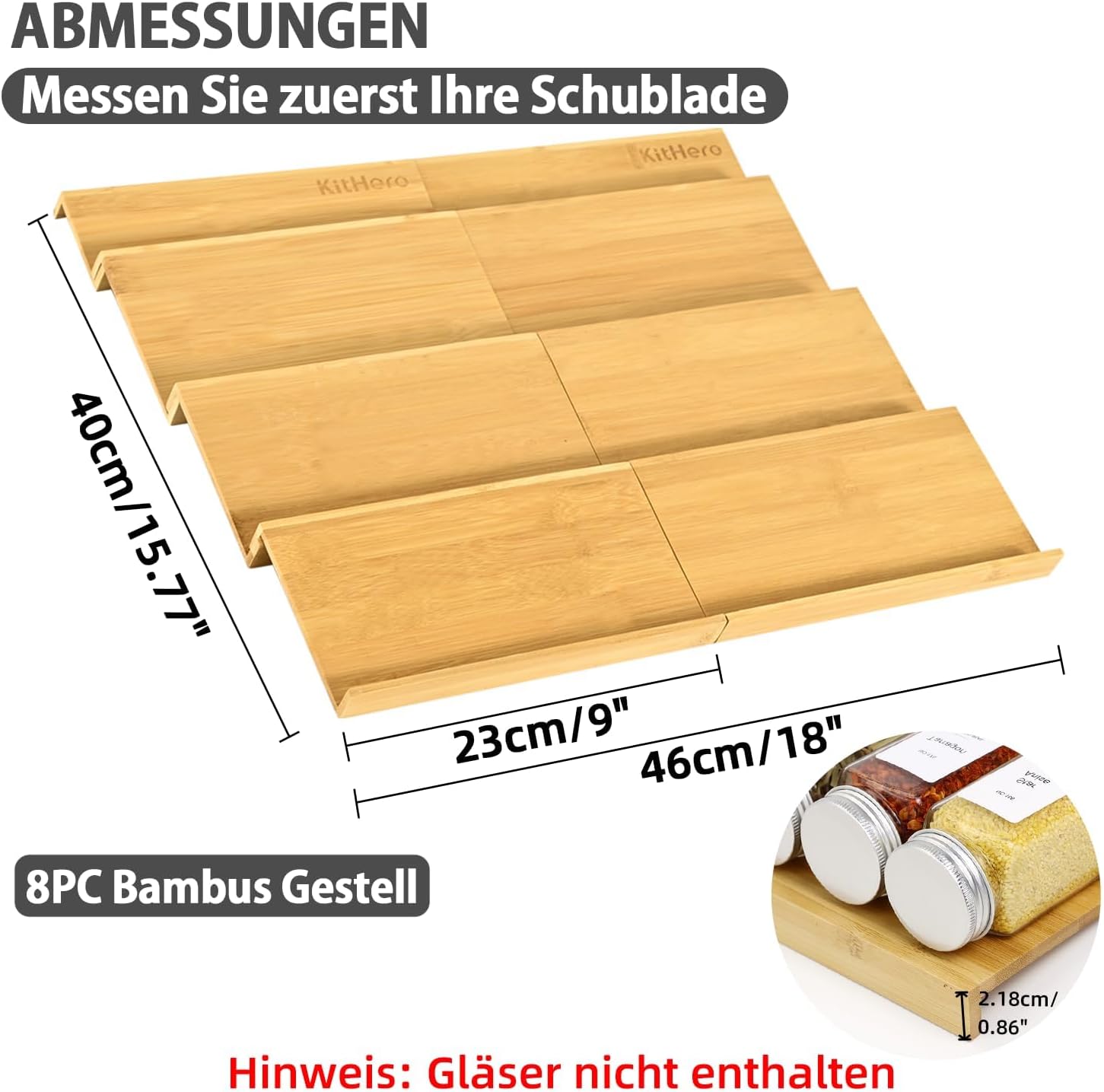 Spice Drawer Organzier,4 Tiers- 8Pcs Bamboo Spice Rack Tray Insert for Cabinet Drawer Countertop, Kitchen Seasoning Storage Drawer Organization,18" Wide x 15.8" Deep (Hold UP To 40 Jars
