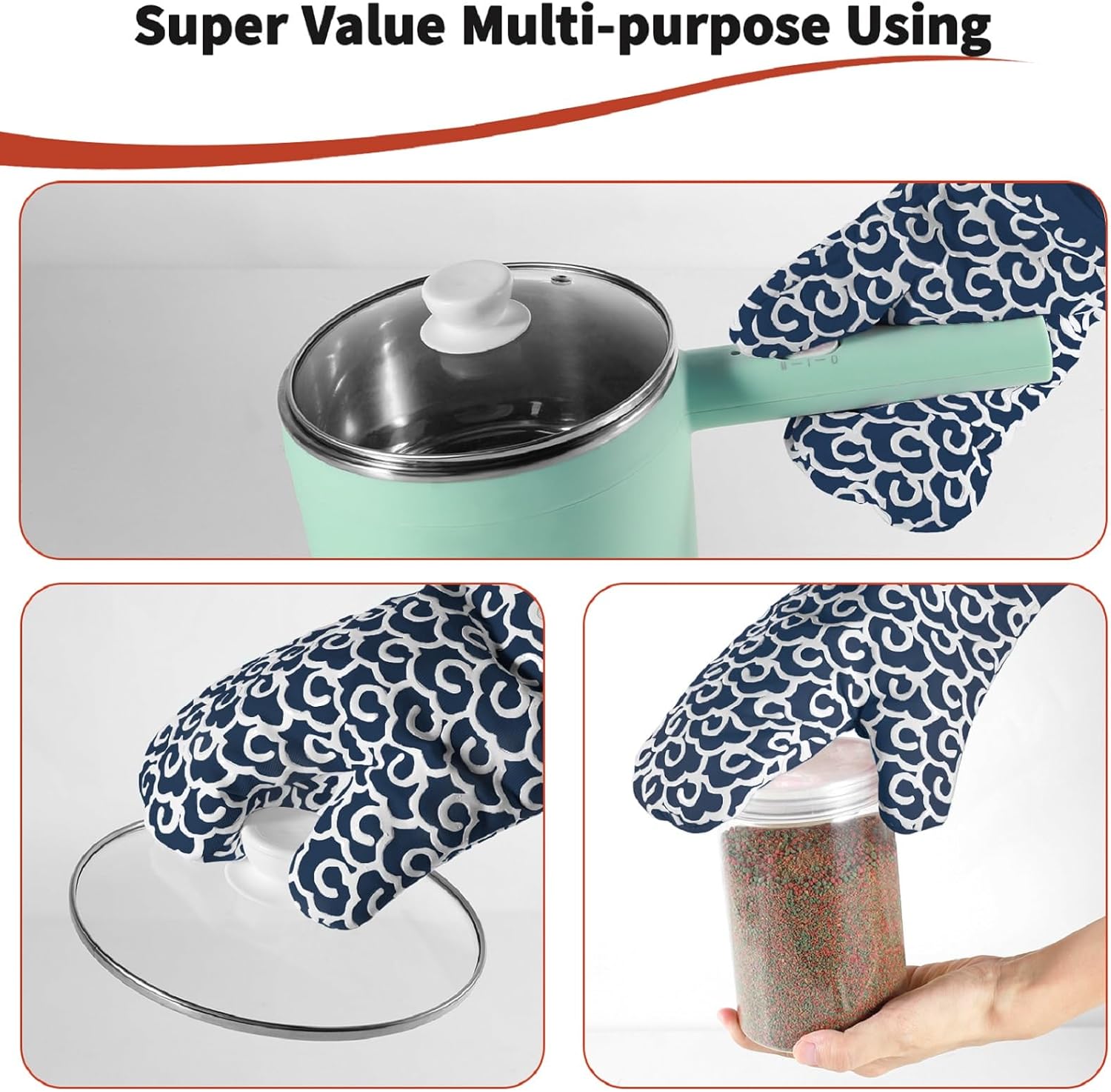 - NON-SLIP DESIGN & SOFT COTTON FABRIC:The auspicious clouds texture pattern on the oven mitts are made of silicone, providing a non-slip grip for excellent handling.more non-slip pattern than regular,provide more powerful resistance when taking things.Both oven mitts and potholders are made of soft quilted cotton lin.