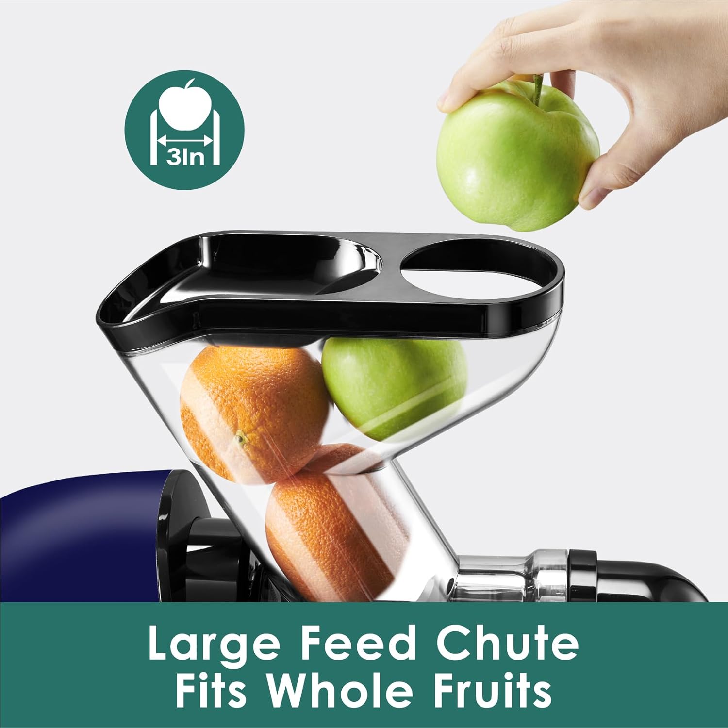- 【Extra-Wide Feed Chute】The Fretta F3000 Edge Max slow masticating juicer is equipped with 3-inch wide feed chute, making it easy to juice large pieces of fruits and vegetables without the hassle of tedious cutting.By minimizing chopping, the juice will be less oxidized, preserving its nutritional content. Tips: This juicer does not automatically remove fruit peels. The image is only for demonstrating the size of the feeding chute. Therefore, for better taste, it is recommended to remove the peels before jucing.