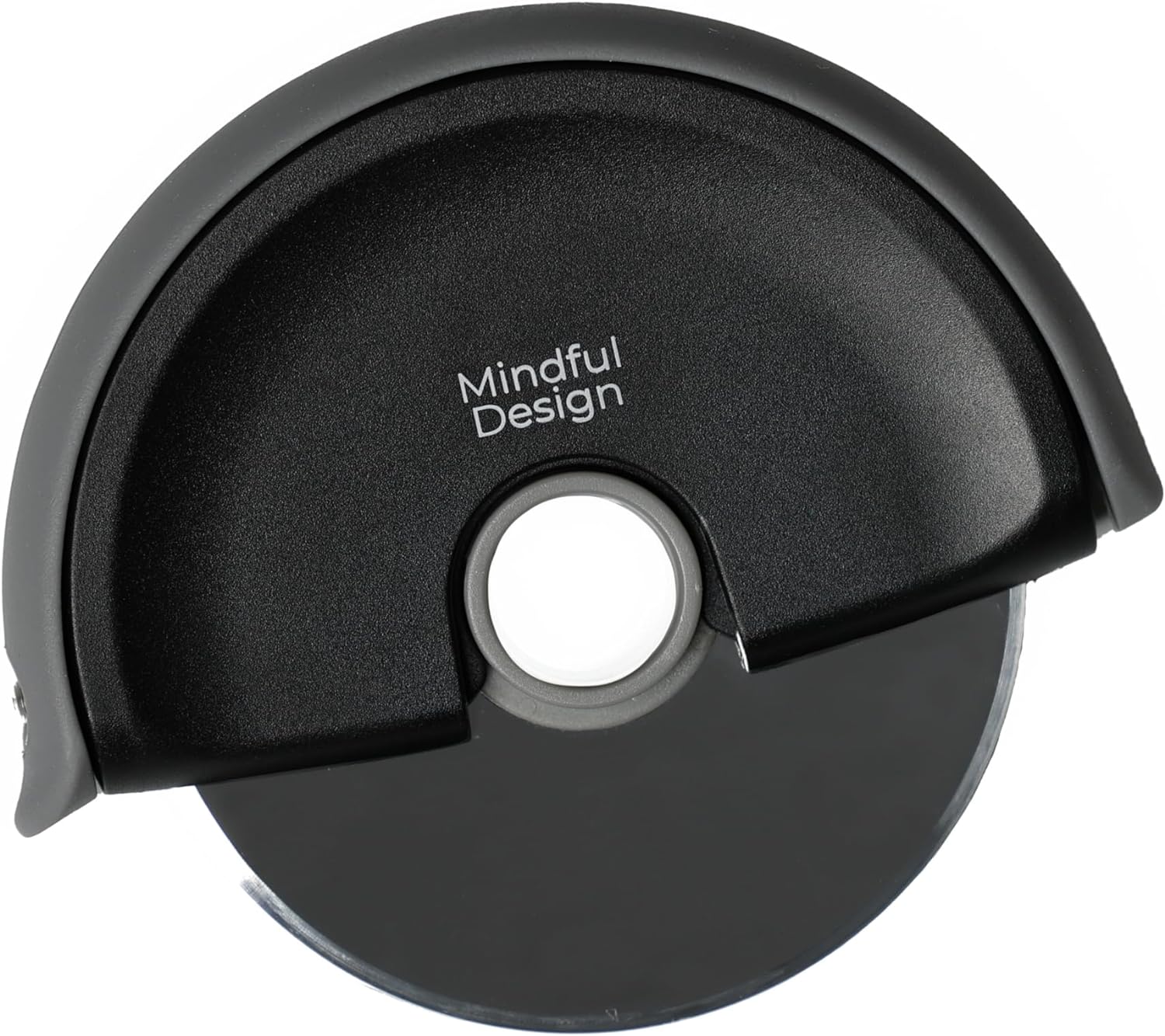Mindful Design Pizza Cutter Wheel with Protective Blade Cover, Easy to Clean and Dishwasher Safe Handheld Pizza Slicer