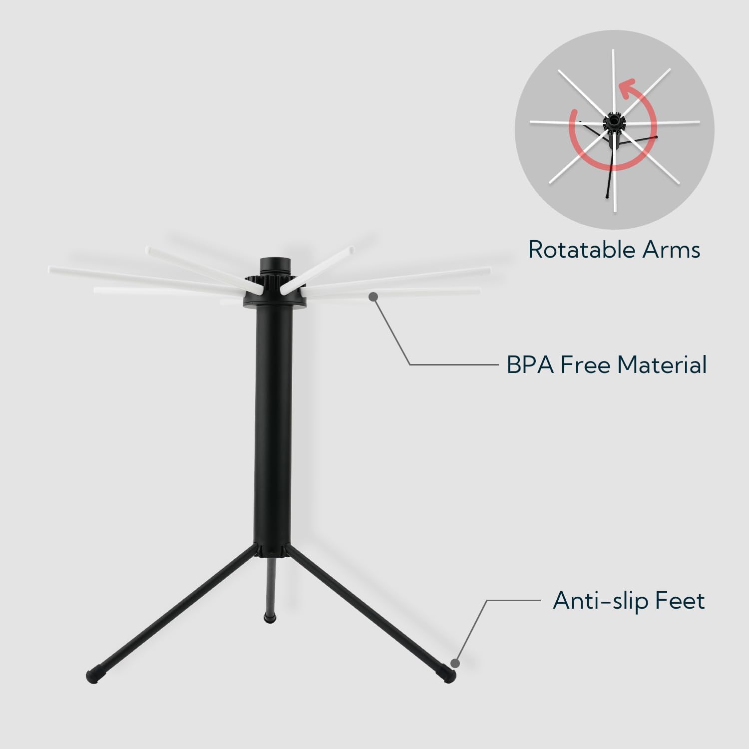 - Quick Set up & Rotatable Arms & Large Capacity: This pasta hanger could be set up within 15 seconds due to the innovative design. The rotatable arms make it much easier to dry the noodles. Equipped with 8 sturdy rods, it could carry up to 5lbs of pasta
