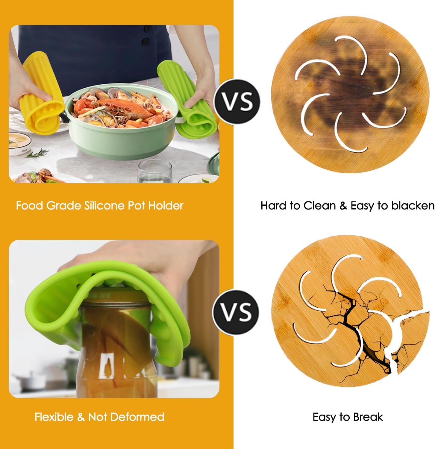 - 🥘Food-grade Silicone Material- The pot holders for kitchen heat resistant are soft, light weight, durable, are perfect for protecting table. Silicone pot holders vibrant colors add fresh energy to the kitchen.