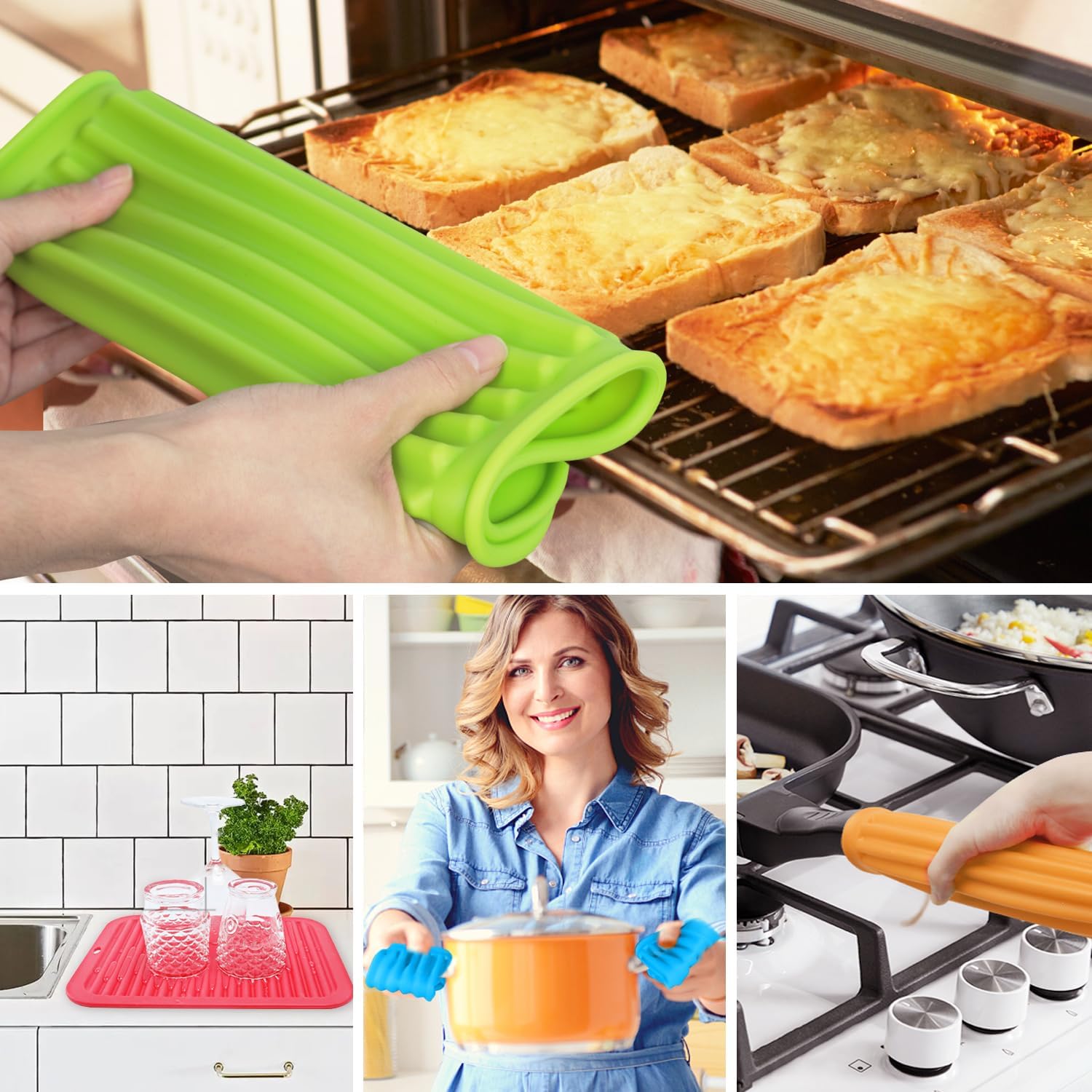 - 🥘Ample Color Combinations: Our large trivet come with various colors to choose, Red, Yellow, Green, Orange and Blue, looks sweet and delicate, adding more pleasure and vigor to your kitchen, these silicone mats for kitchen counter make for a perfect gift for hostess, mother's day, holiday gift, and even housewarming and new year's.