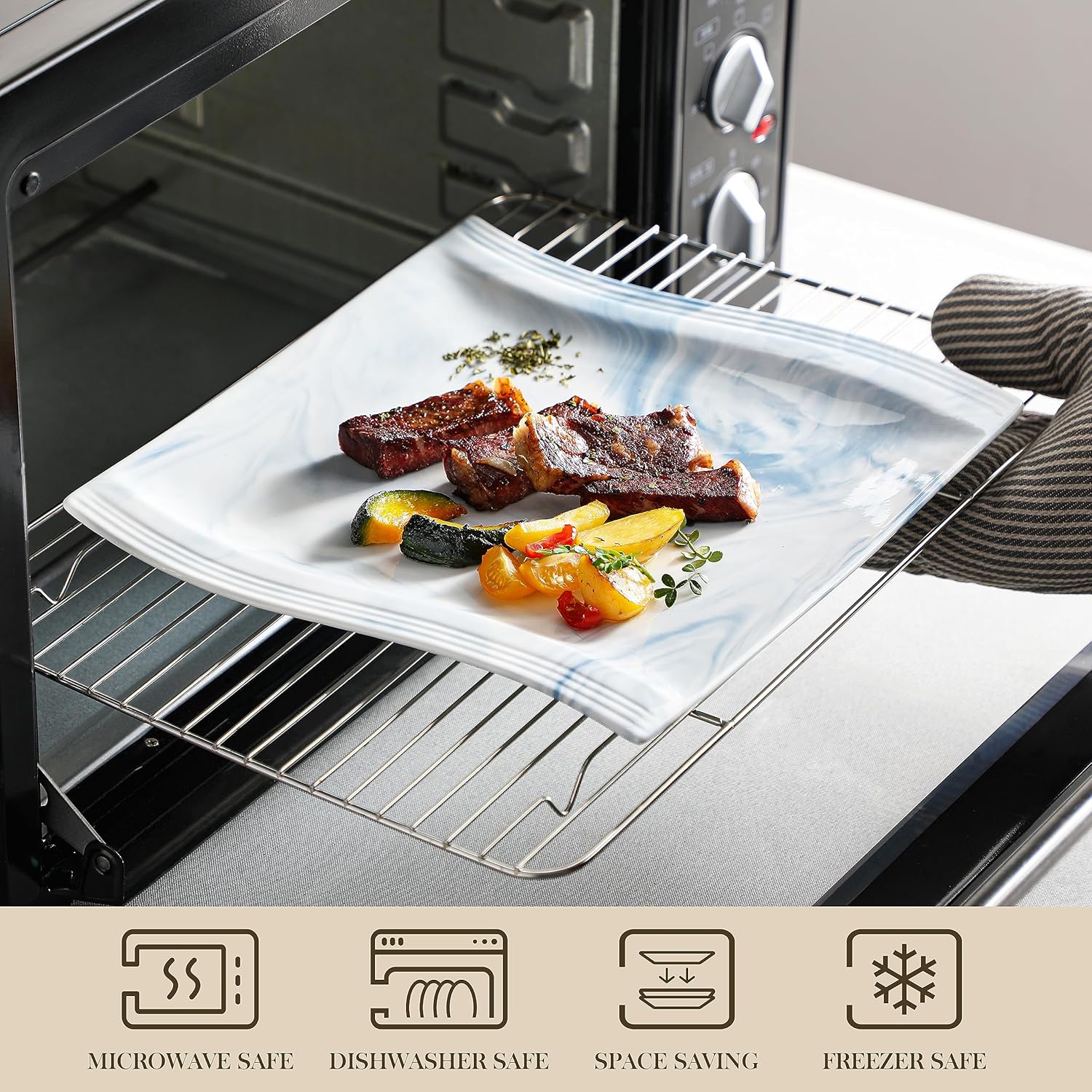 - Stylish & Low Maintenance -- Featured with low-profile wavy-shaped square design, each piece plates and bowls set are distinct; The blue dinnerware set is designed to provide the best dining experience while requesting low maintenance, saves you time and effort in upkeep.