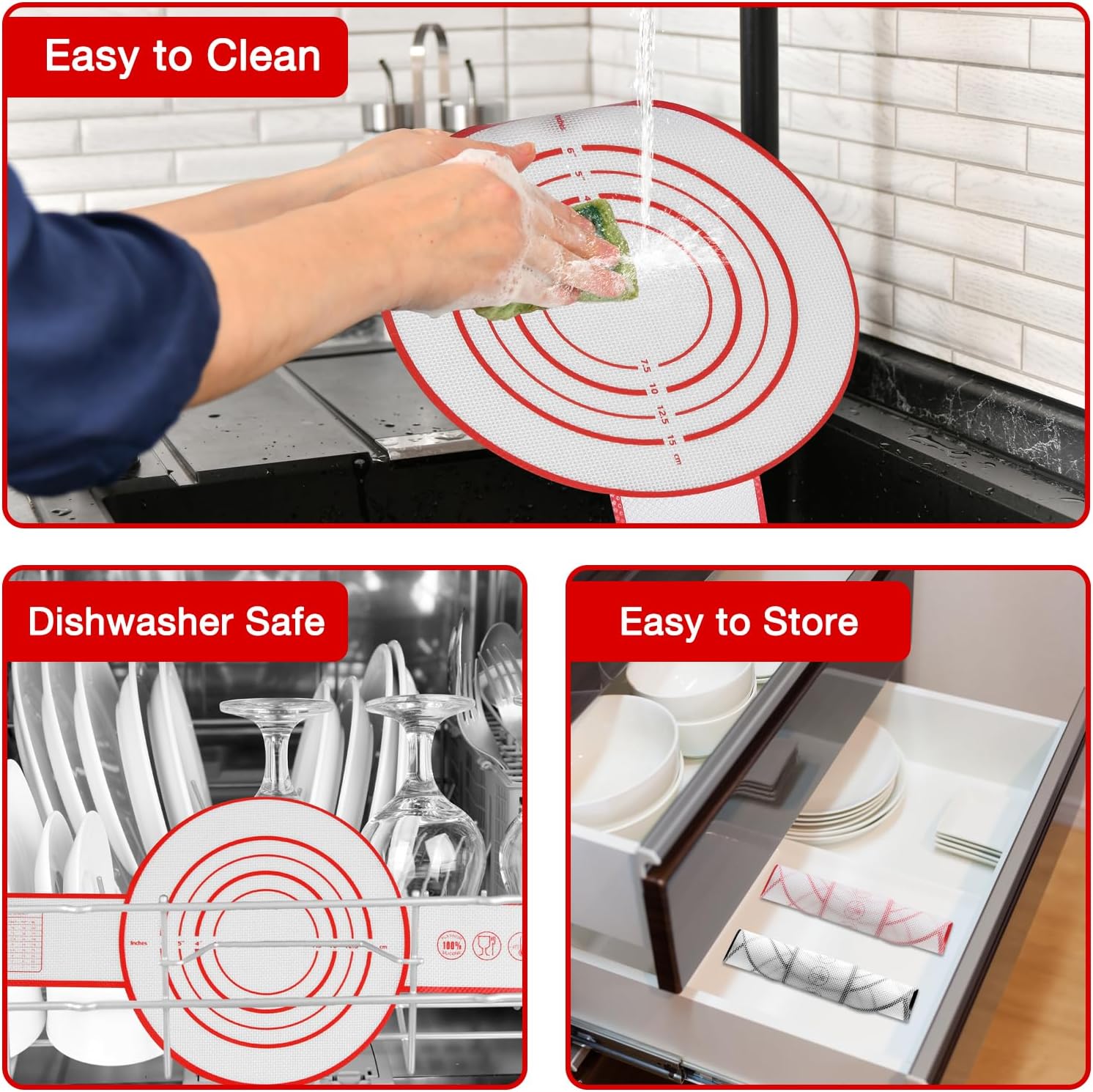 - Non-Stick Surface: The bread silicone baking mat prevents bread, pizza, and cookie dough from sticking to the pan or dutch oven, ensuring easy removal and maintaining shape Long handles offer safer, easier dough transfer without burning your hands.