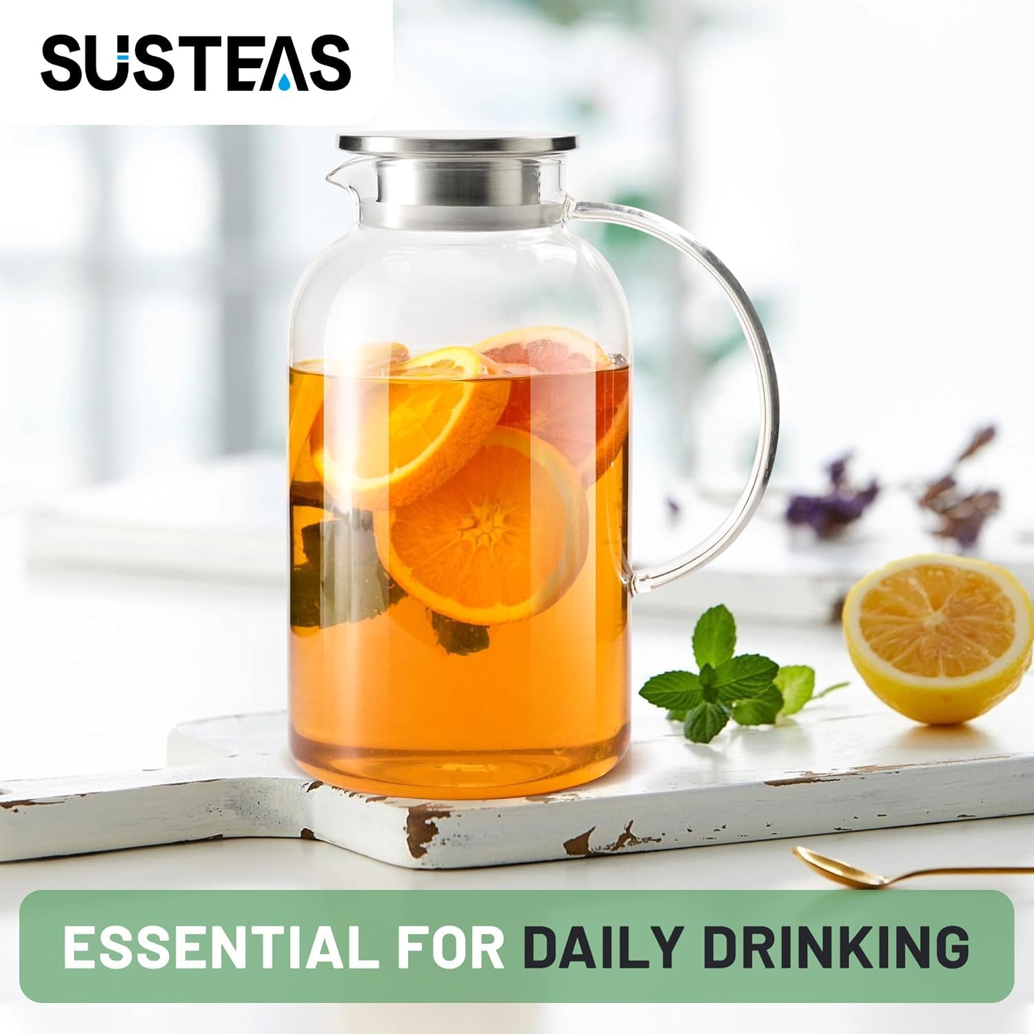- Superior Material for Durability And Safety: SUSTEAS water pitcher is made of heat-resistant borosilicate glass, which can withstand temperatures from -20°C ~150°C/-4°F~302°F. Its devoid of lead and BPA construction makes it a healthier choice for daily use. Refrigerator Safe (some applicable) & Stovetop Safe (low heat)