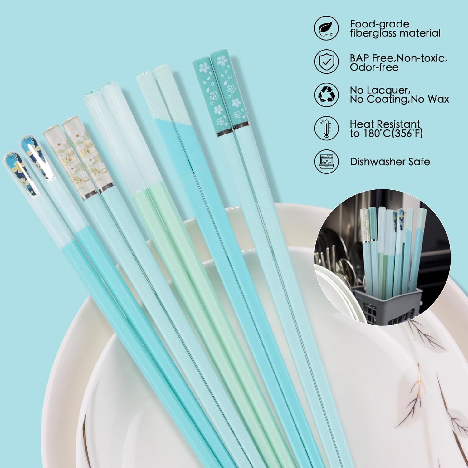 - Dishwasher Safe: With high-temperature resistance up to 356°F, our chopsticks can be easily cleaned in the dishwasher without getting melted, bent or cracked, leaving no residual dirt or oil stains, ensuring a hassle-free post-meal cleanup.