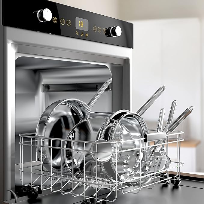 - Easy to Clean: Mirror polish inside & exterior give the cookware set a professional look, also easy to wipe messes with a cloth. Dishwasher safe for easy clean up.