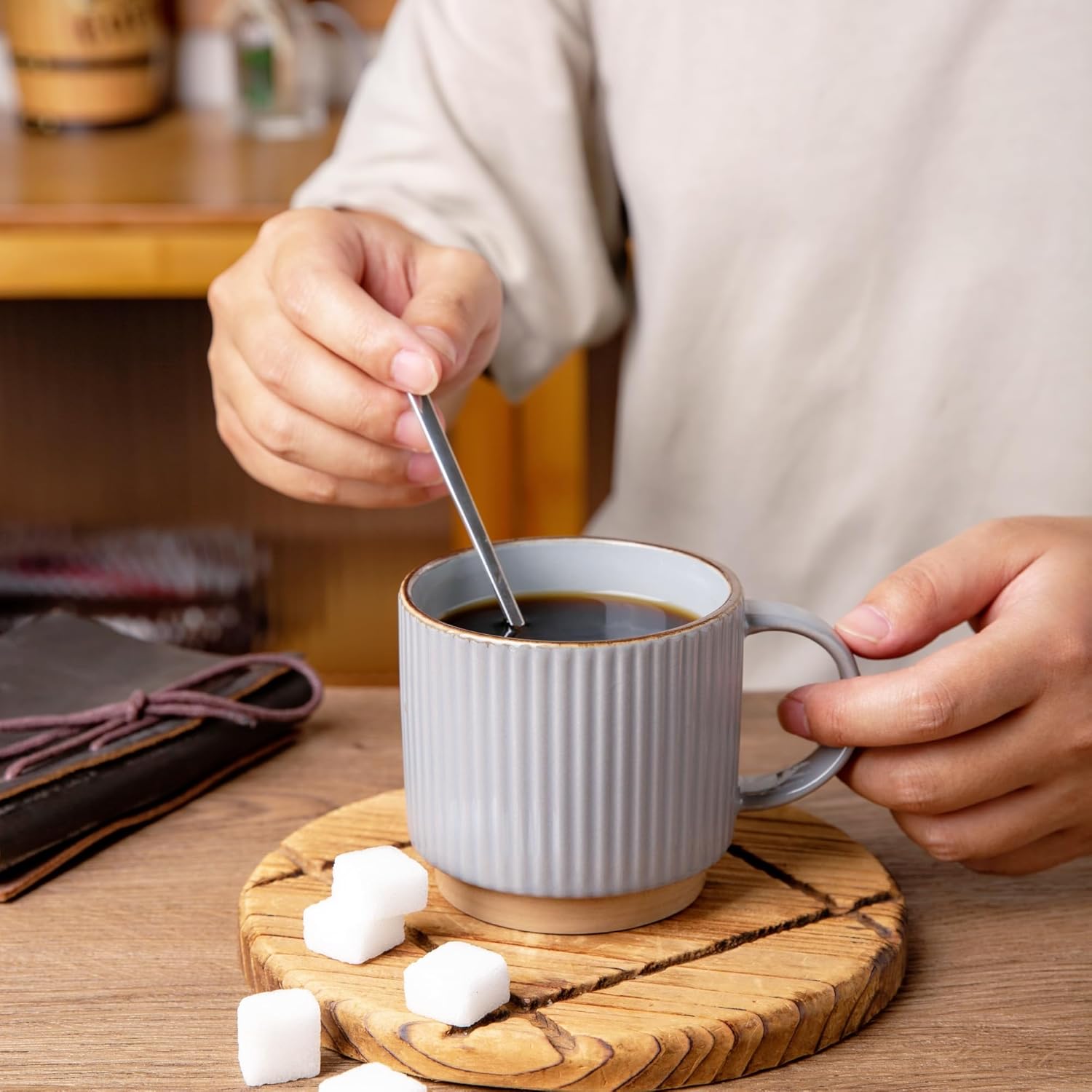 - Stackable and Modern Design: These ceramic mugs feature a beautiful embossed texture design, the smooth rim ensures a comfortable drinking experience, the stackable design allows for easy storage and helps save space in your kitchen.