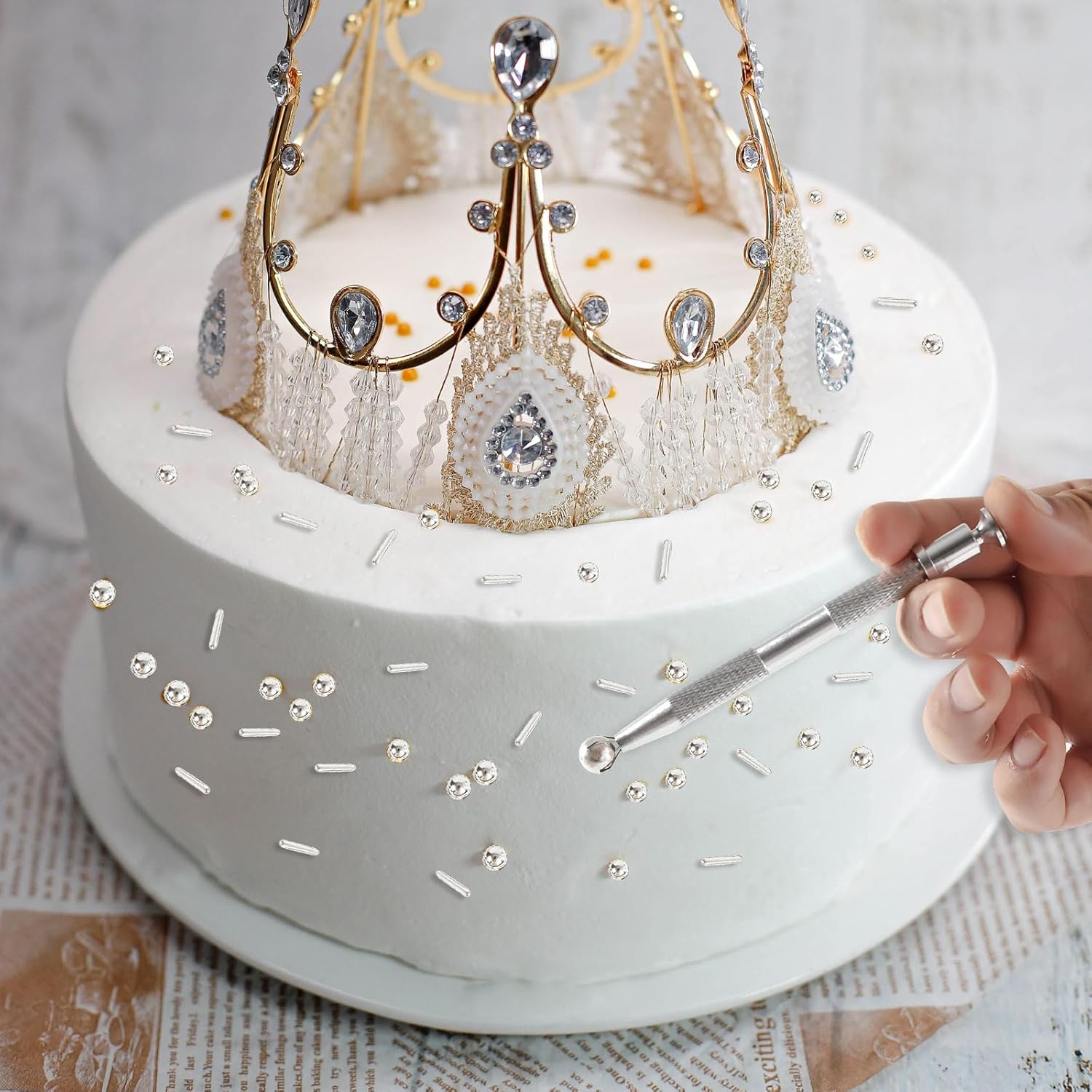 - 【Excellent Material】: Silver sprinkles for cake decorating are made of food-grade safe ingredients, you can eat them with confidence. It can be eaten by men, women, old and young. The 4-claw pick up tool is made of stainless steel material, durable and retractable, it allows you to clamp and place pearl sugar smoothly.