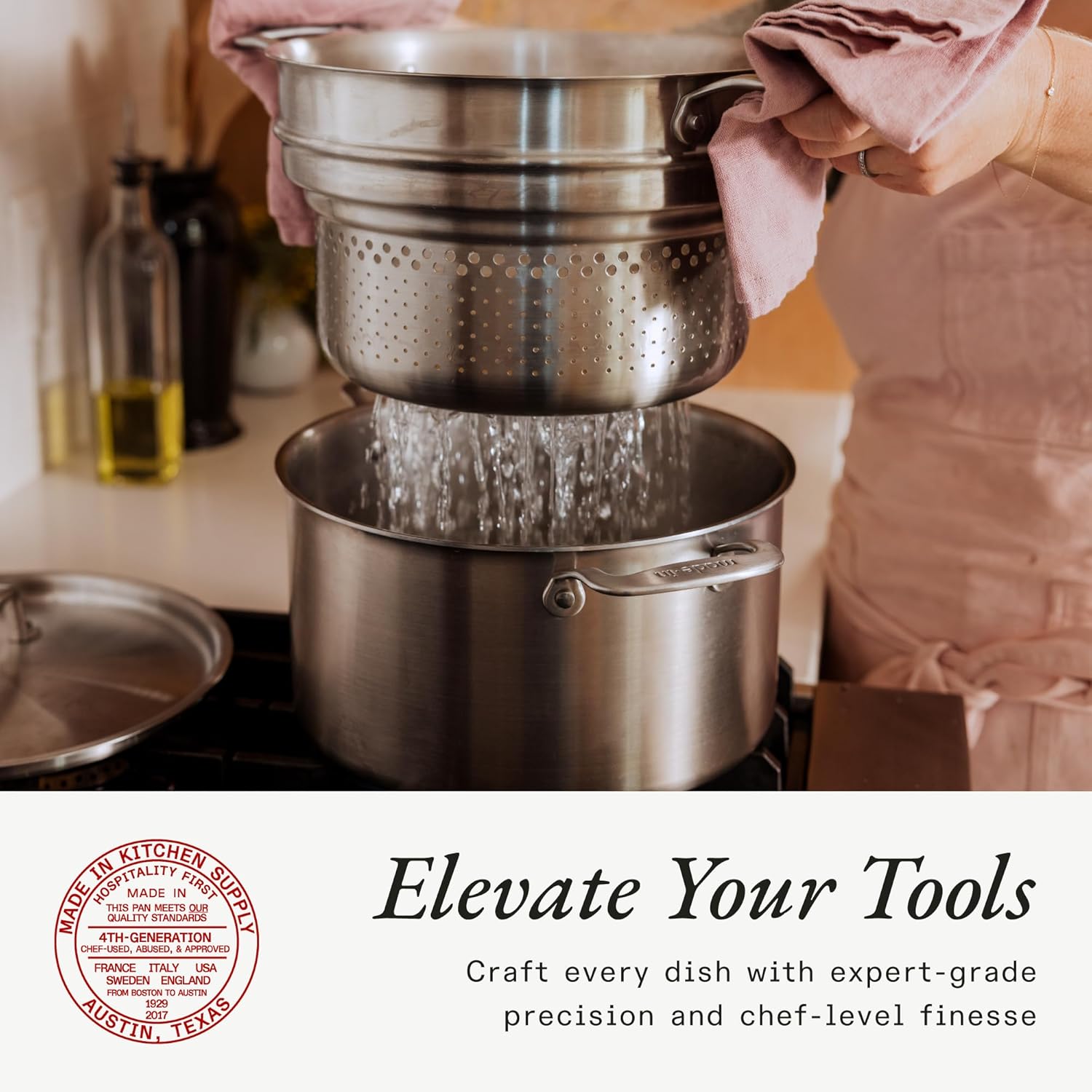 Made In Cookware - 8 Quart Stainless Steel Stock Pot With Lid and Pasta Insert - 5 Ply Stainless Clad - Professional Cookware - Crafted in Italy - Induction Compatible