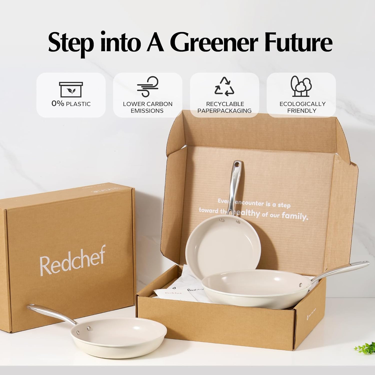 Redchef Nonstick Frying Pans Set, Ceramic Pan Skillet, Non Toxic Pans for Cooking, 8" 9.5" 11" Ceramic Frying Pan Set PFAS & PTFE & PFOA Free with Stay Cool Handle, Dishwasher & Oven Safe, Beige White