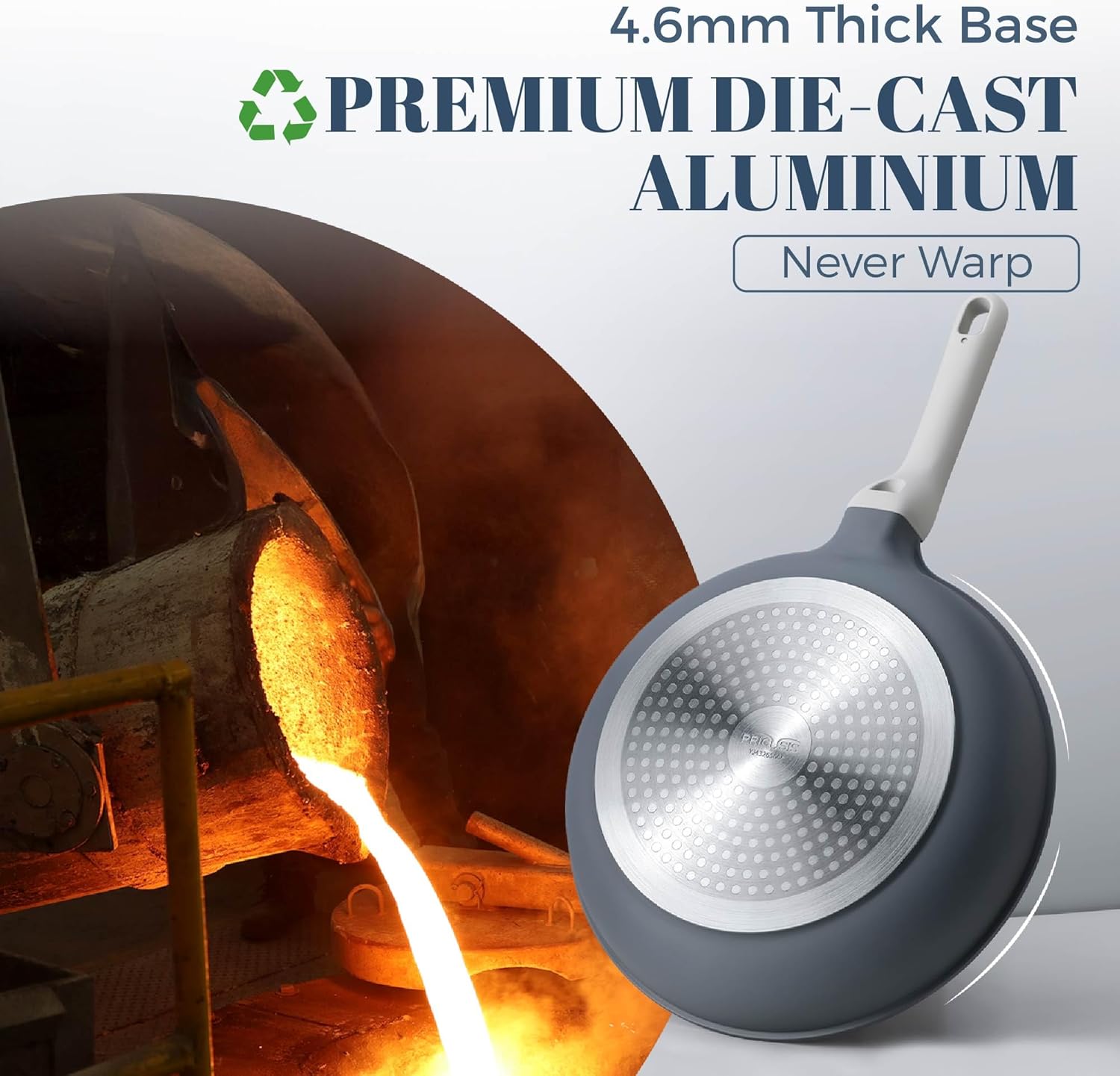 - Quick & Even Heating : 4.6 mm thick die-cast aluminum ensures even heat distribution, heat 40% faster than typical nonstick deep frying pan, saving you precious time in the kitchen and letting you enjoy more moments with your loved ones