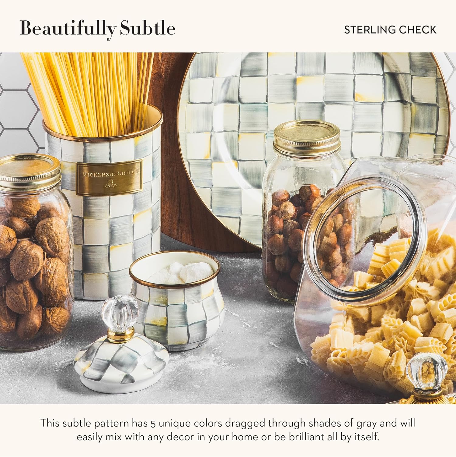 MACKENZIE-CHILDS Enamel Creamer and Sugar-Bowl Set, Cream Dispenser and Sugar Holder, Unique Kitchen Decor, Gray-and-White Sterling Check