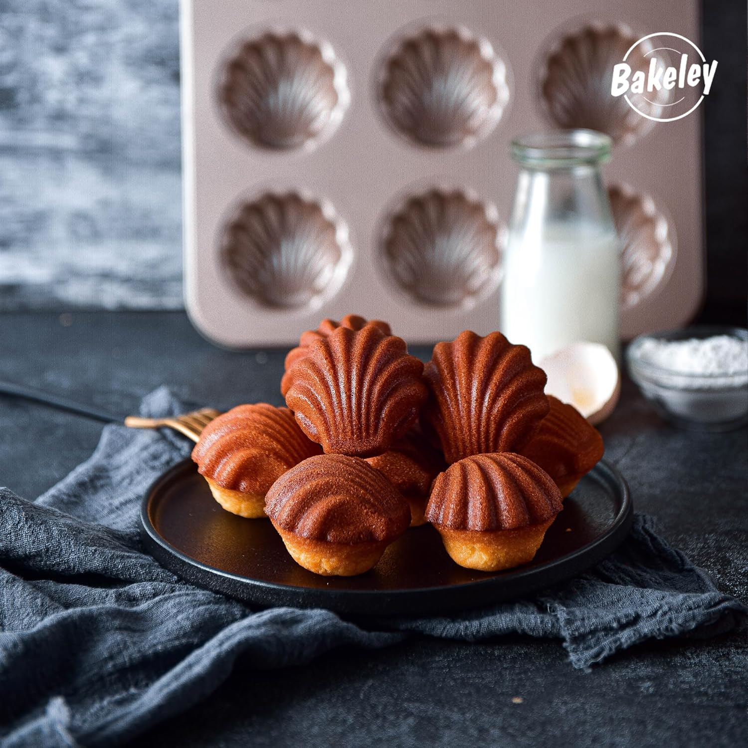 Madeleine Mold Cake Pan, 9-Cavity Non-Stick Spherical Shell Madeline Bakeware for Oven Baking (Champagne Gold)