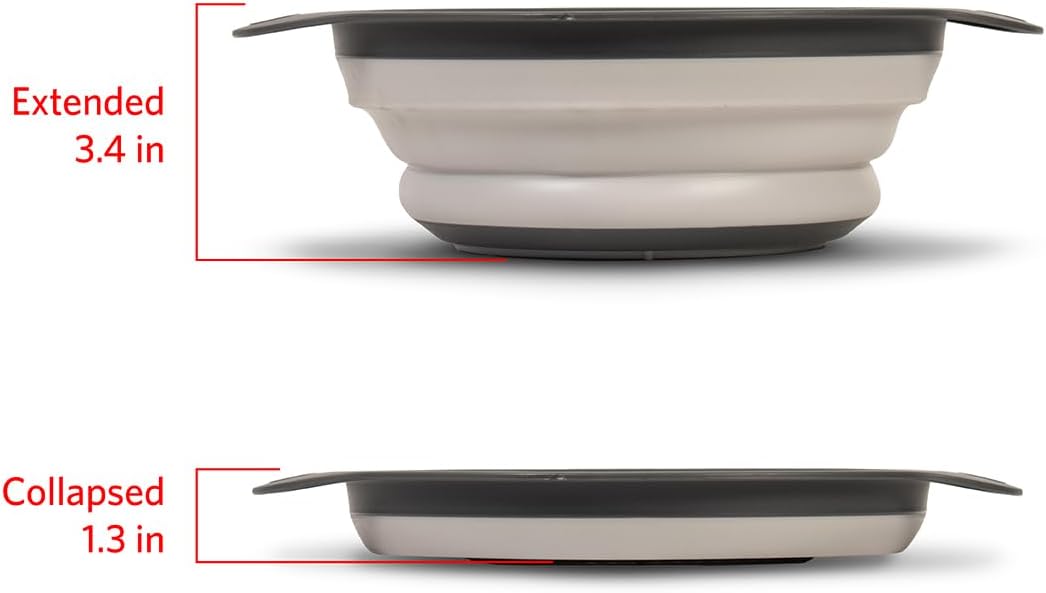 - SAVES SPACE IN YOUR KITCHEN – Say goodbye to bulky colanders! This collapsible strainer folds down to only 1.3 inches high to take up minimal space in cupboards and drawers. Great compact tool for RVs and campers.