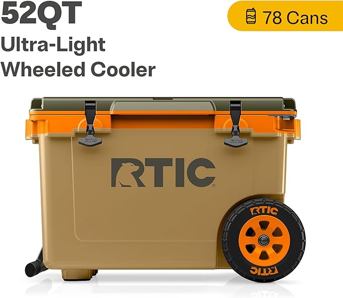 - ALL-TERRAIN WHEELED COOLER – Venture into the great outdoors with confidence, equipped with the RTIC Ultra-Light insulated cooler with wheels, equipped with puncture-resistant, all-terrain wheels to effortlessly traverse through rough terrains.