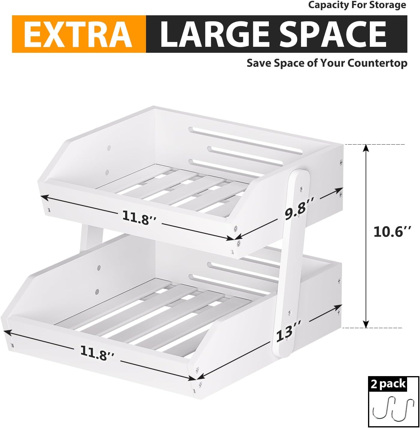 Bamboo Fruit Basket for Kitchen - 2 Tier Fruit Bowl, Large Holder With Banana Hangers, Idea For Vegetable Storage, Bread Display, Snack Organizer (White)