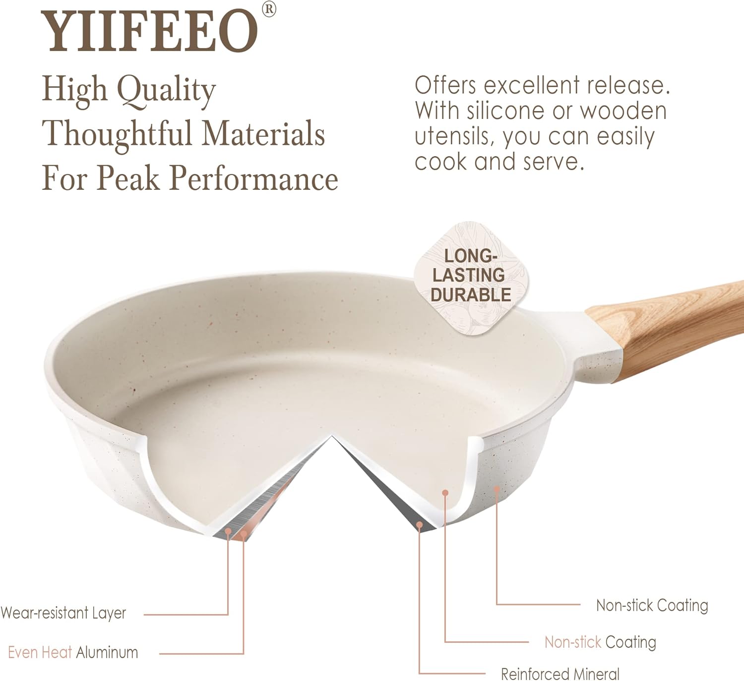 - 【Ultimate Nonstick & Super Easy To Clean】A top level, harder nonstick granite, it provides at least 8x extra nonstick durability, keeping food sliding smoothly. Being an enjoy to both cooking and cleaning, just a little wipe. YIIFEEO nonstick cookware set keeps stubborn stains out of your life and keeps your passion for cooking.