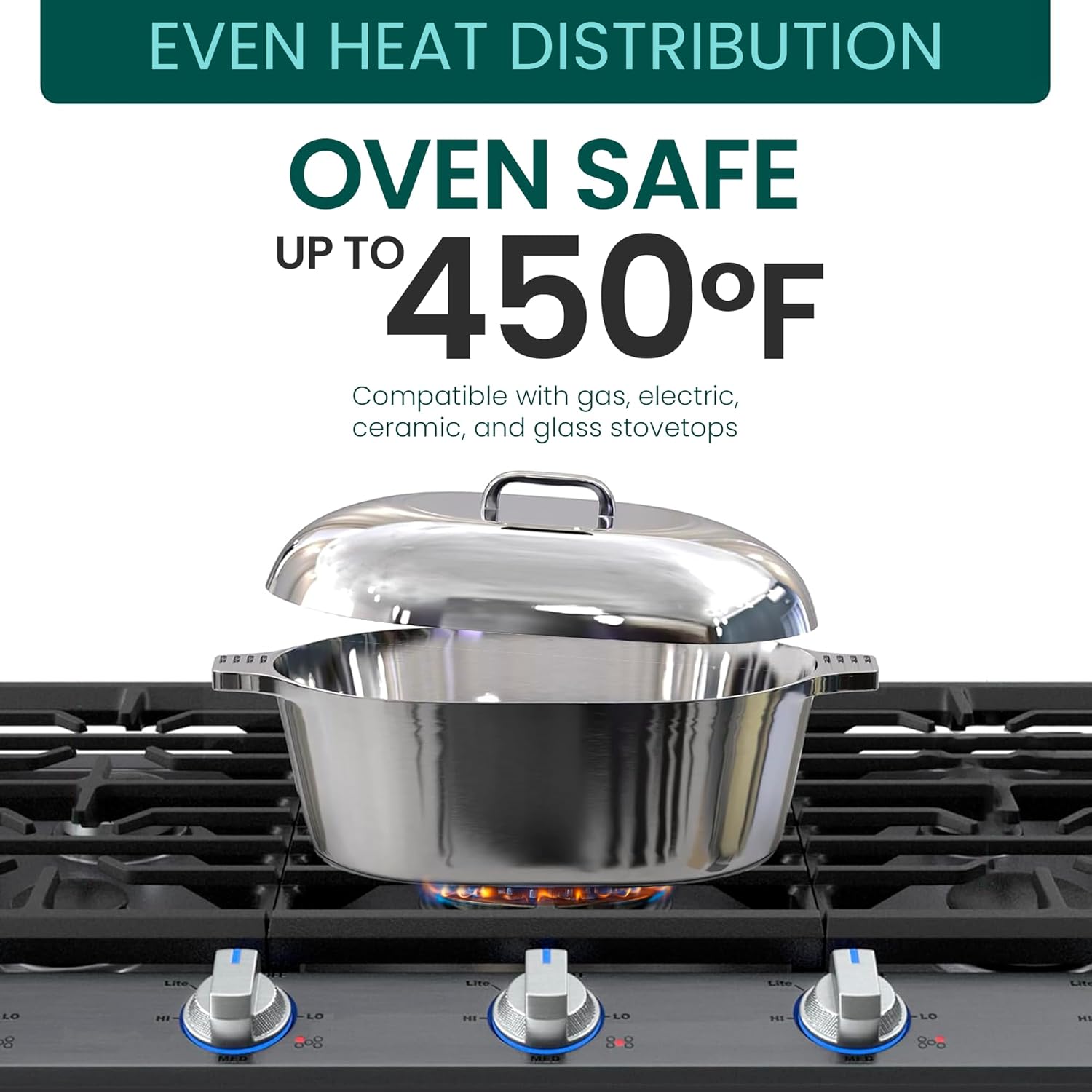 - SUPERIOR HEAT DISTRIBUTION: Crafted from premium cast aluminum, this dutch oven ensures even heat distribution, delivering consistently perfect meals. Ideal as an aluminum roaster pan for braising, roasting, baking, and preparing flavorful stews with precision.