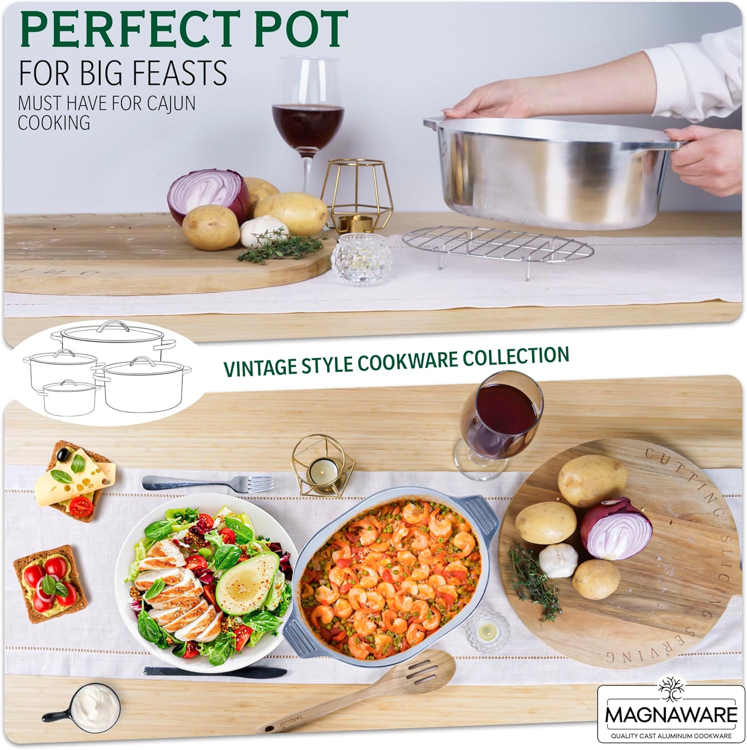 - BUILT TO LAST GENERATIONS: Constructed for durability, this heavy-duty cast aluminum pot is oven safe up to 450°F. MAGNAWARE dutch ovens feature a classic polished aluminum finish that complements any kitchen aesthetic. For best results, simply use a small amount of oil, and to preserve the surface, we recommend silicone, wood, or nylon utensils over metal ones.