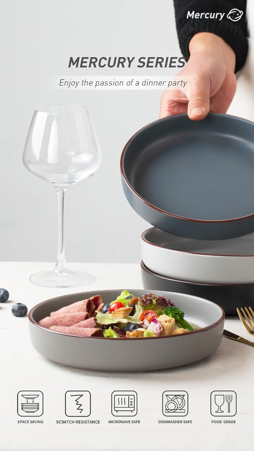 - 【MULTIPURPOSE BOWL SET】8.5 inches Dia, 33oz capacity, can hold both solids and liquids with ease, suitable for pasta, salads, soups, entrees, desserts and so on., it's definitely a perfect dinnerware set to serve a family breakfast, lunch or dinner.