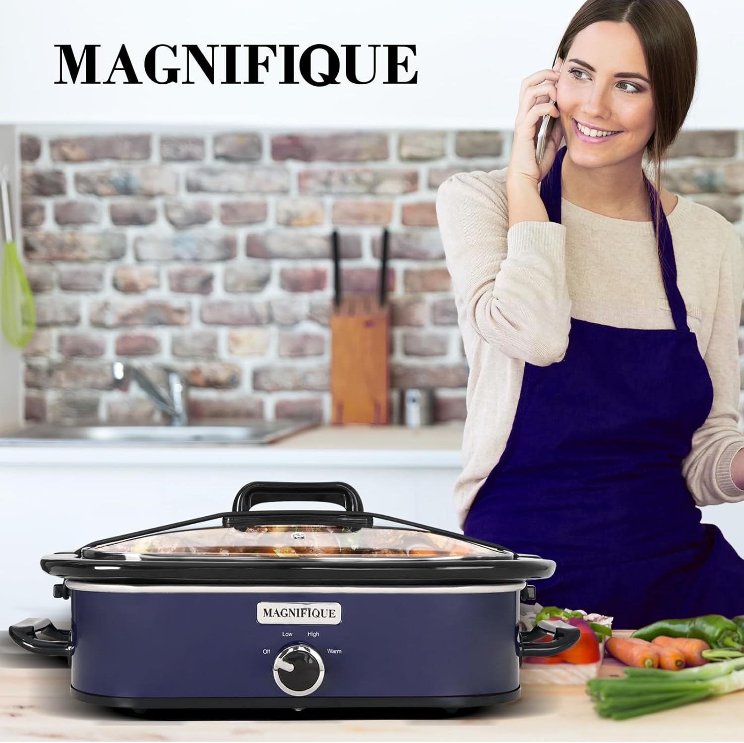 Magnifique 4-Quart Slow Cooker with Casserole Manual Warm Setting - Perfect Kitchen Small Appliance for Family Dinners, Dishwasher Safe Crock, Blue
