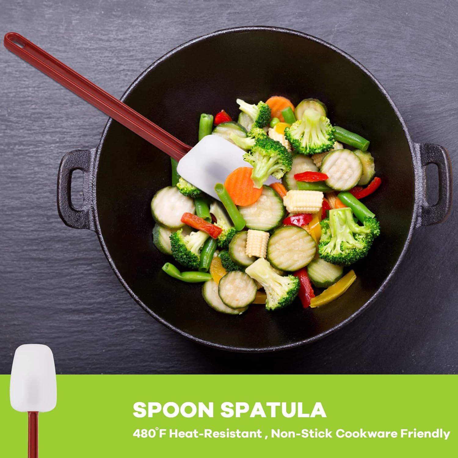 - SANITARY & RELIABLE: Nonstick and easy to clean, these silicone spoonulas are not going to stain or get rusted like metal ones. There will be no staining, no odor retention, no flaking, peeling, or breaking of any sort. Furthermore, of one piece design, this commercial spatula set is sanitary, and the head will not pop off.