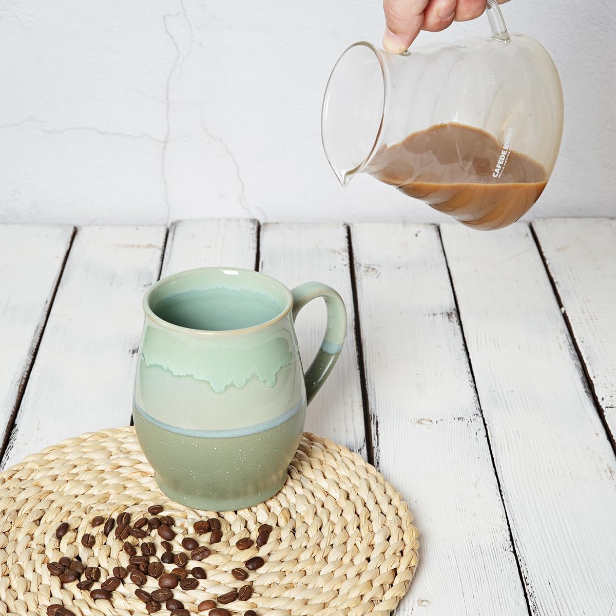 Bosmarlin Extra Large Ceramic Coffee Mug, 25 Oz, Dishwasher and Microwave Safe, Oversized Big Tea Cup for Office and Home, Reactive Glaze (Green)