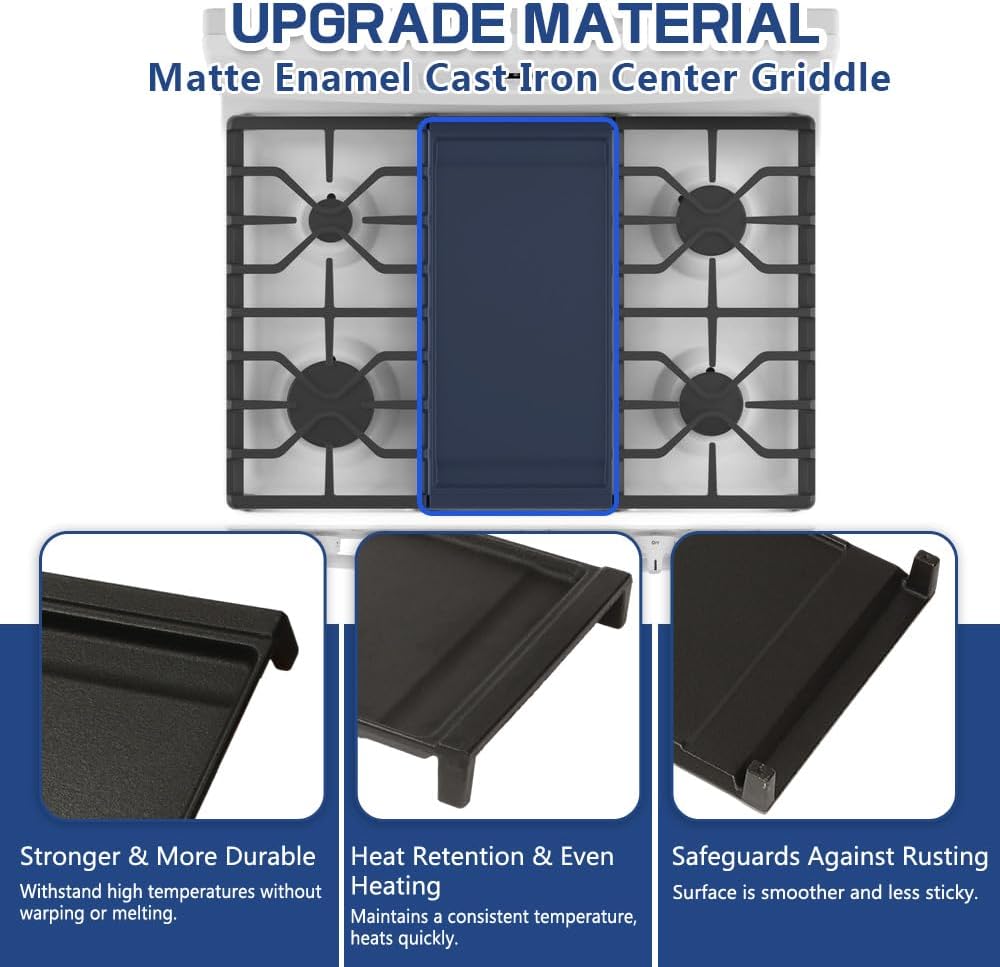 - ✔ EASY TO CLEAN - The gas stove griddle replacement is easy to clean, wash with warm water and detergent, and keep it dry after cleaning. It has a functional grease trap designed to catch drippings or scrapings, keeping your stove clean and tidy. Spend less time on upkeep and more time enjoying your cooking.