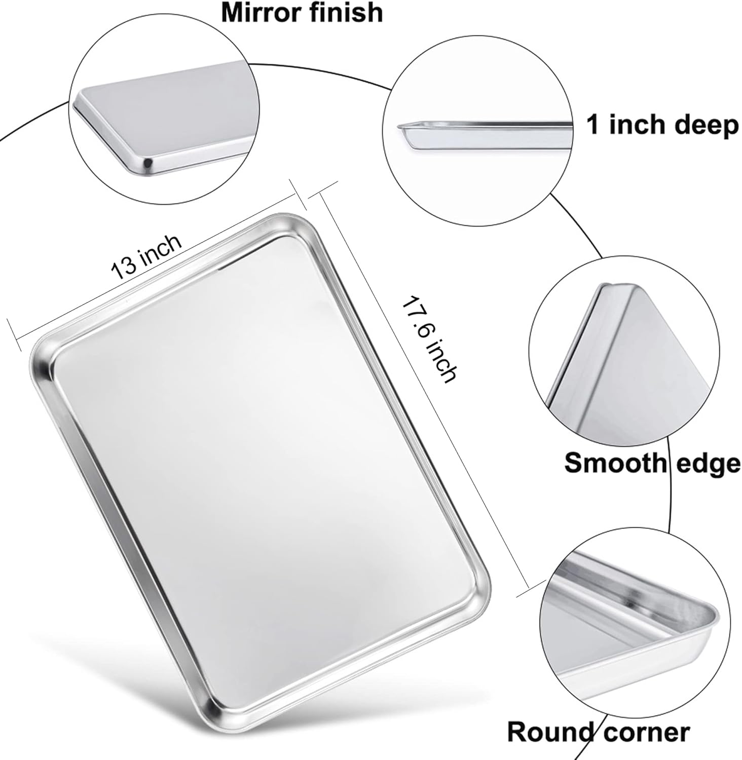 - Exquisite Craft Pan: The baking pan with 1 inch deep rim increase capacity of storing food, Avoid food juice spilling out to keep your oven neat, Mirror finish surface help reduce the risk of sticking to food, Smooth edges no rough spot prevent hurting your hands