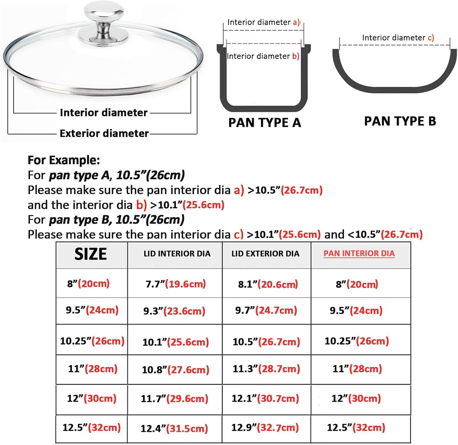 - ✔ EASY TO USE – The pan lids equip with stainless steel handle - heat resistant and offers a comfortable grip, oven safe as well, please be careful when take it out from oven or diswasher, Besides, never worry about excess boiling steam, the steam vent would release excess moisture.