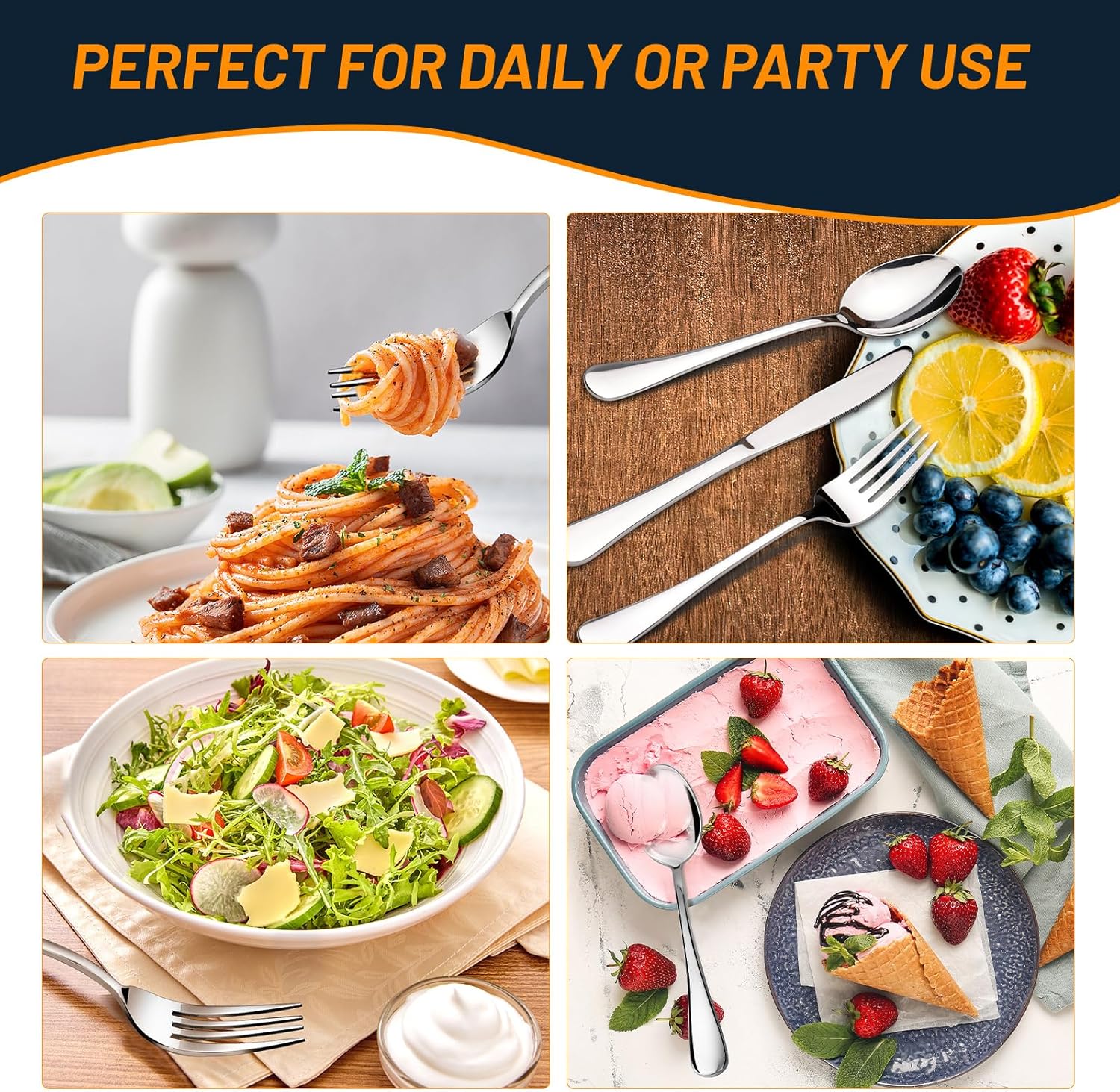 - ★DISHWASHER SAFE:The stainless steel flatware set for 12 is dishwasher safe, making clean up easy and convenient.