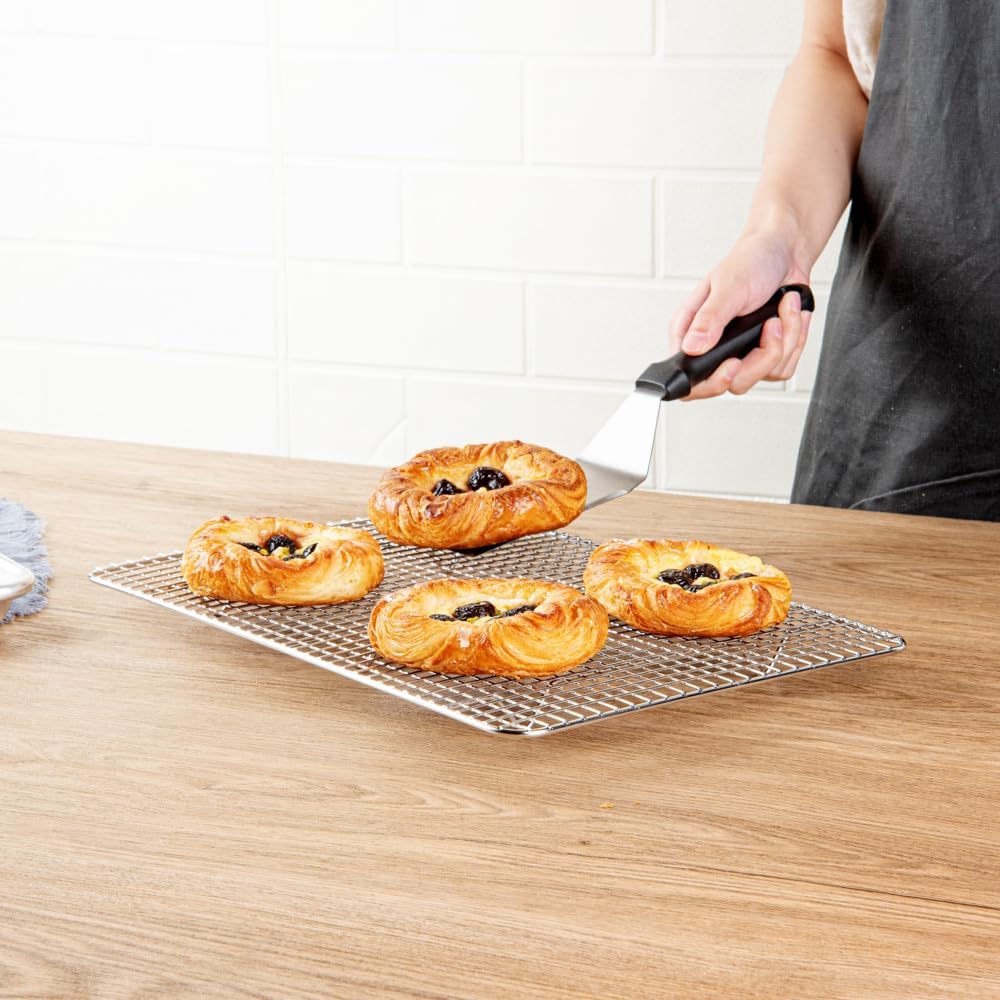 - EVENLY COOLS DOWN TREATS: The mesh wires of this metal cooling rack provide steady air circulation to evenly cool down treats. Effortlessly bake perfect cookies, cakes, and sweets!