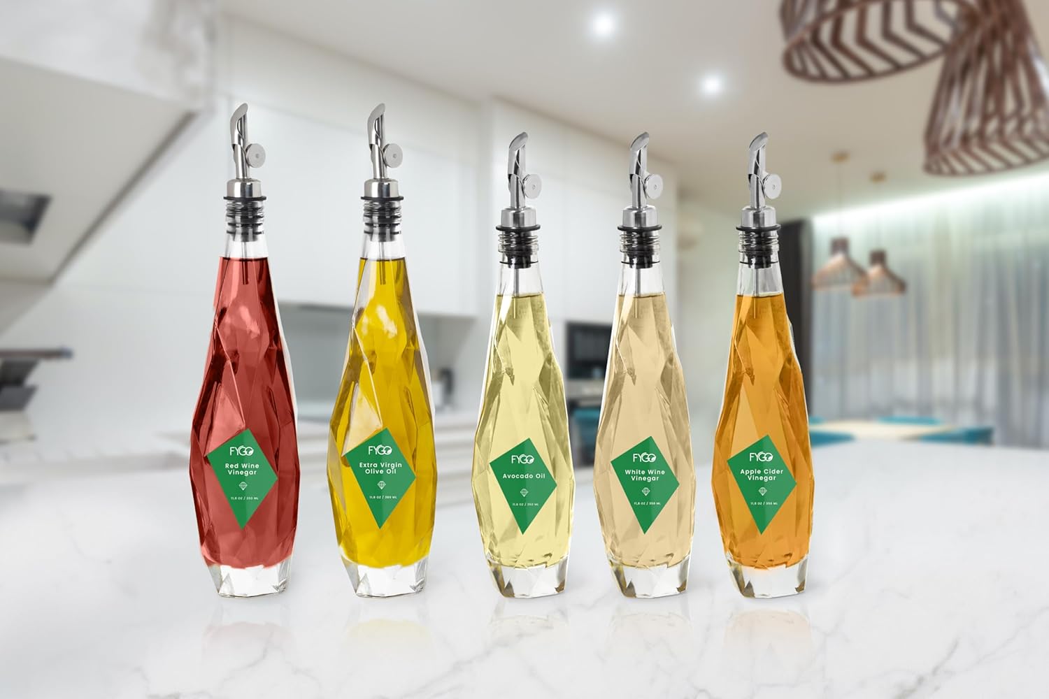 FYGO Diamond Lux Olive Oil Bottle Dispenser - 500ml Glass Container With Pourer and Funnel for Kitchen - Oil and Vinegar Set