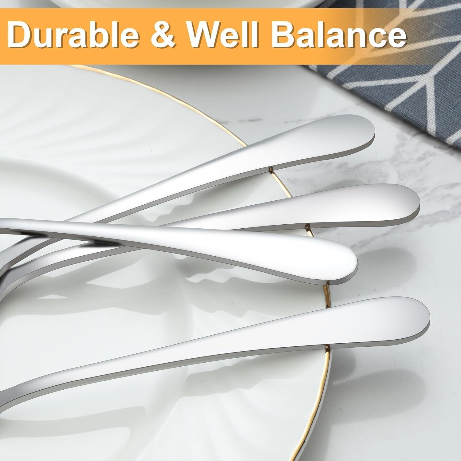 - 【Ergonomic Handle & Classic Design】This stainless steel serving spoons have an ergonomic handle, which is carefully weighted to be comfortable to hold. Meanwhile, these metal serving spoons with a classic silver surface with mirror polished makes it always keep shiny, without sharp edges, ensuring it never go out of style