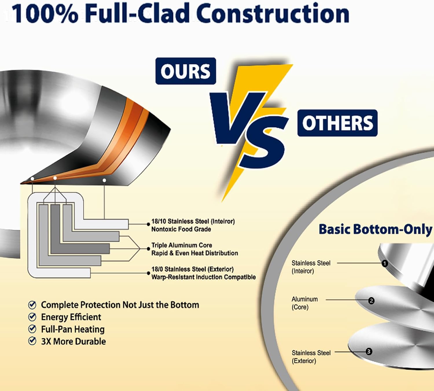 - The 2.3mm Thick Fully Clad Three-Layer Steel Material, with the High Side and Round Rim Design, enables the 8QT Seafood Boil Pot to have quick response and durable performance, making the soup less likely to spill over. Even after hours of boiling, the Stainless Steel Soup Pots can still maintain its performance. With the lid on, it remains warm for a long time after being cooked. Large Pot is suitable for making large batches of anything like soup and seafood.