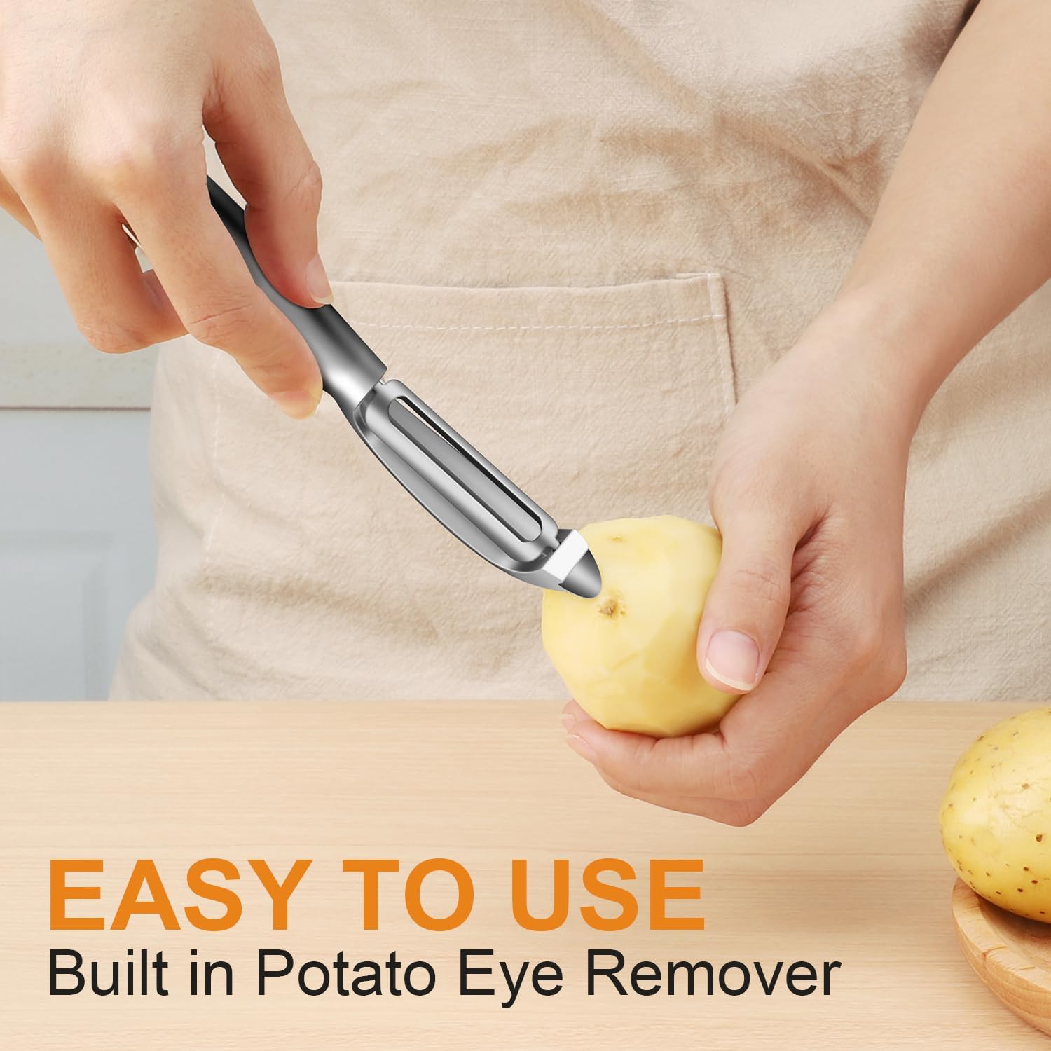 - Upgrade Quality Material: Use upgraded rust free carbon steel blade and zinc alloy body makes it rust-free. The blade is hard which better than ordinary stainless steel. Quickly removes tough skinned fruits and vegetables.