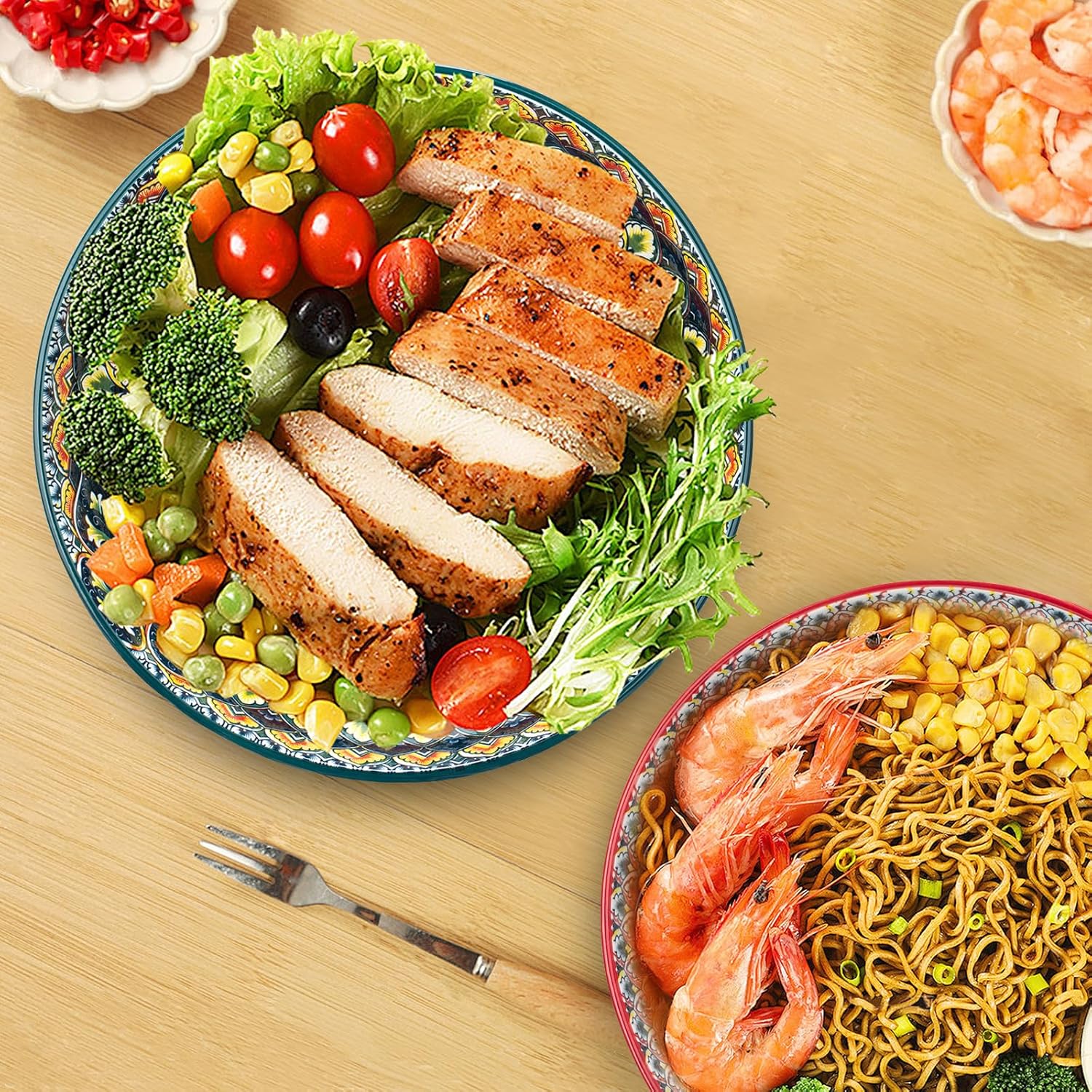 Large Serving Bowls, 75 Oz Fruit Salad Bowls Set of 2, Bohemian Style Large Porcelain Dishes for Entertaining Parties,Big Bowls for Salad, Pasta, Fruit, Chips, 10.3 Inch Diameter (green.red)