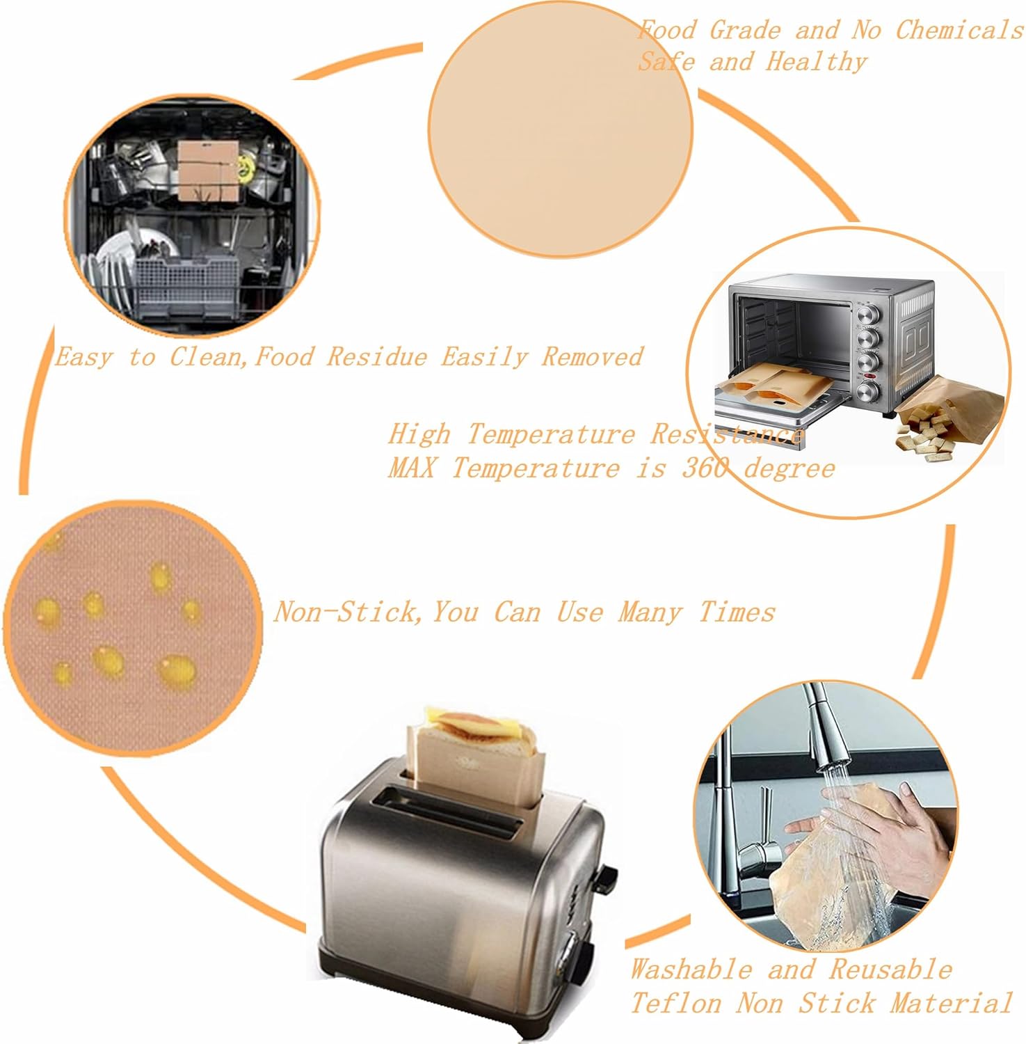 - HIGH-QUALITY:High-quality glass fiber can withstand temperatures up to 250℃. Reusable sandwich toaster bags ensure the safety and hygiene of your toast, sandwich or other snacks while maintaining the taste of the toast, sandwiches or other snacks