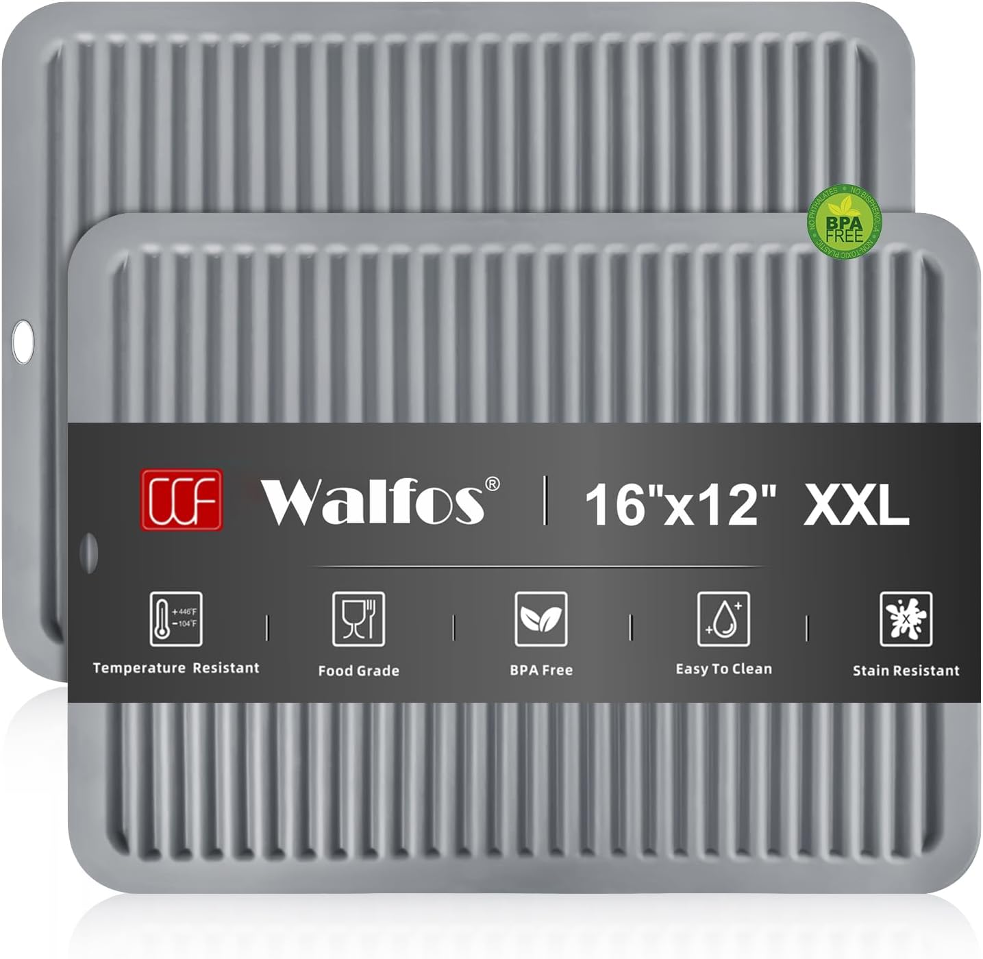 Walfos Large Silicone Trivet 16x12 Inch, Hot Pads for Kitchen, Heat Resistant Pot Holders Trivets for Hot Dishes, Hot Pots and Pans, Quartz Countertops, Gray, 2 Pack