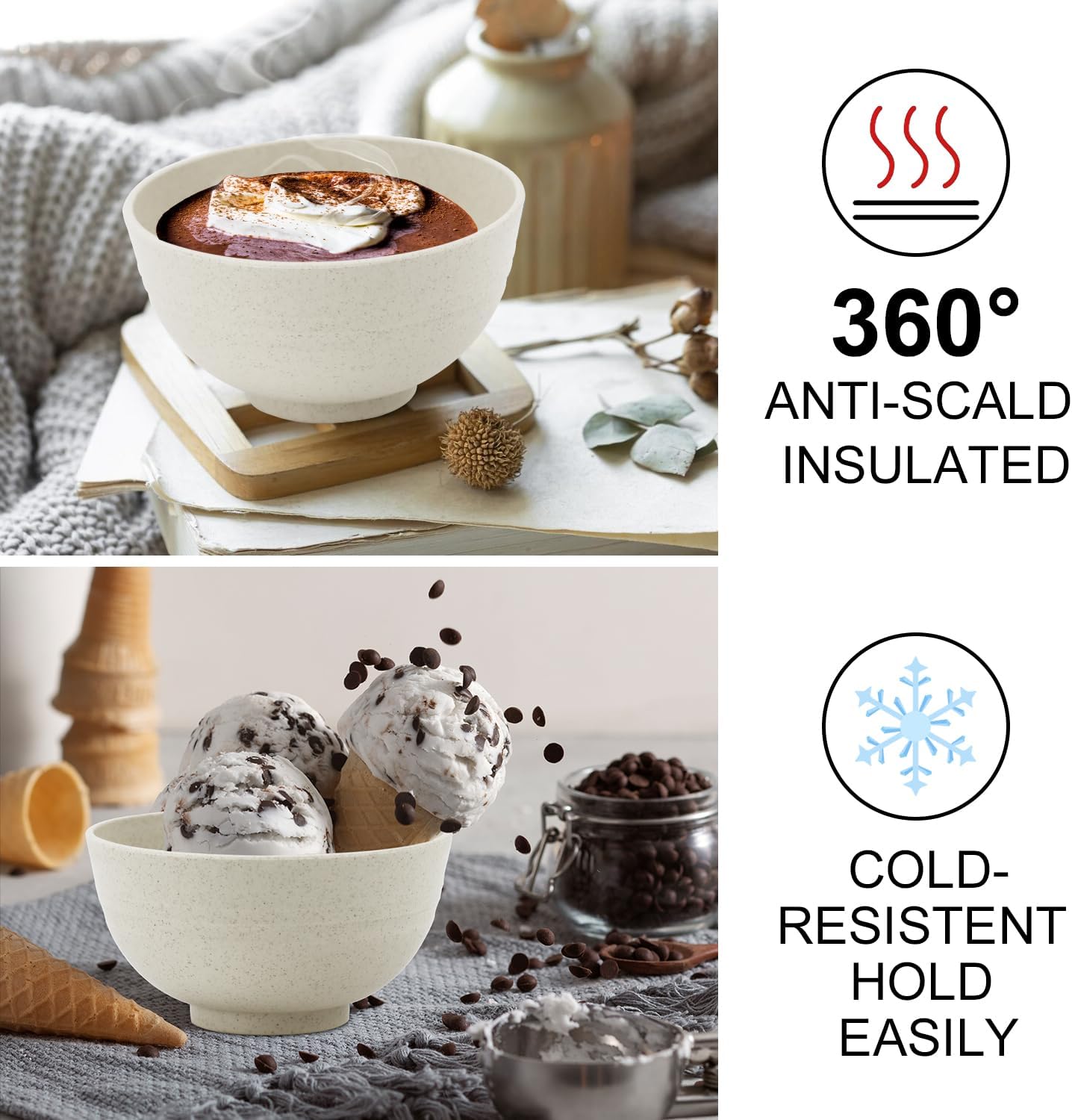 - ใ๐ฃ๐ฟ๐ฎ๐ฐ๐๐ถ๐ฐ๐ฎ๐น ๐๐ฎ๐ป๐ฑ๐ ๐๐ผ๐๐น๐ใ Wrova Wheat Straw Dessert Bowls - Hold 10 oz to the rim - Perfect for desserts, ice cream, fruits, meal prep, small snacks, and dipping sauces - Can be easily held with one hand - Ideal size and texture for a great touch and feel.