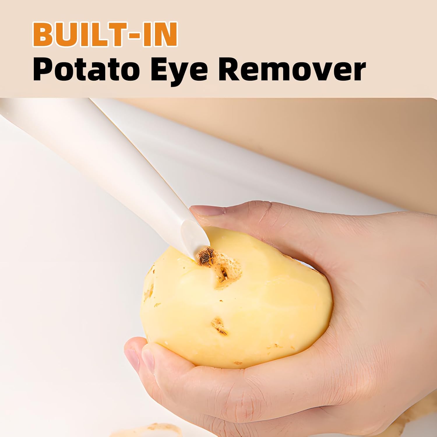 - 🥔【Effortless Peeling】: This peeler was tested for scraping fruits and vegetables of varying hardness and softness, and was able to peeling the skin effortlessly, even when dealing with harder vegetables such as pumpkin.With built-in potato eye remover, it is a high quality kitchen potato peeler.