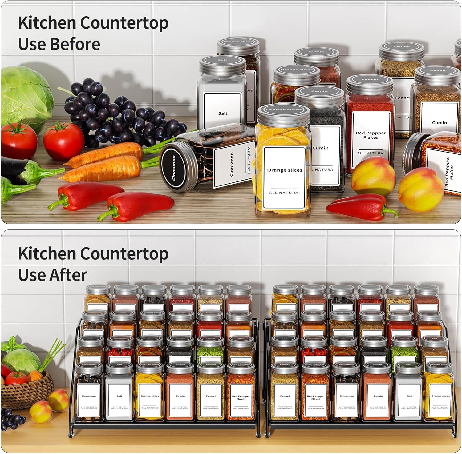 - Easy to Assemble & Cleaning: Spice rack shelf with folding design, easy to assemble, no screws required, with simple instructions. Get a cabinet countertop spice rack organizer in a breeze. Simply wipe with a rag and the spice rack is ready, brand new, caring for your spice cabinet organizer has never been easier.