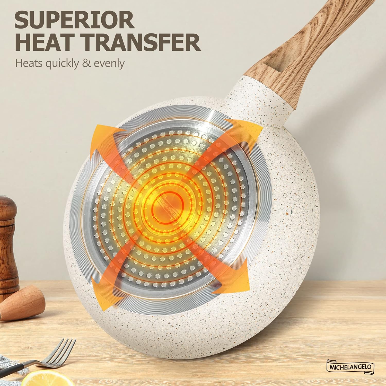 MICHELANGELO Frying Pans Nonstick - 12 Inch Frying Pan with Lid, Large 12 Inch Skillet with Ergonomic Handle, Non-Toxic Fry Pan - All Cooktops Compatible
