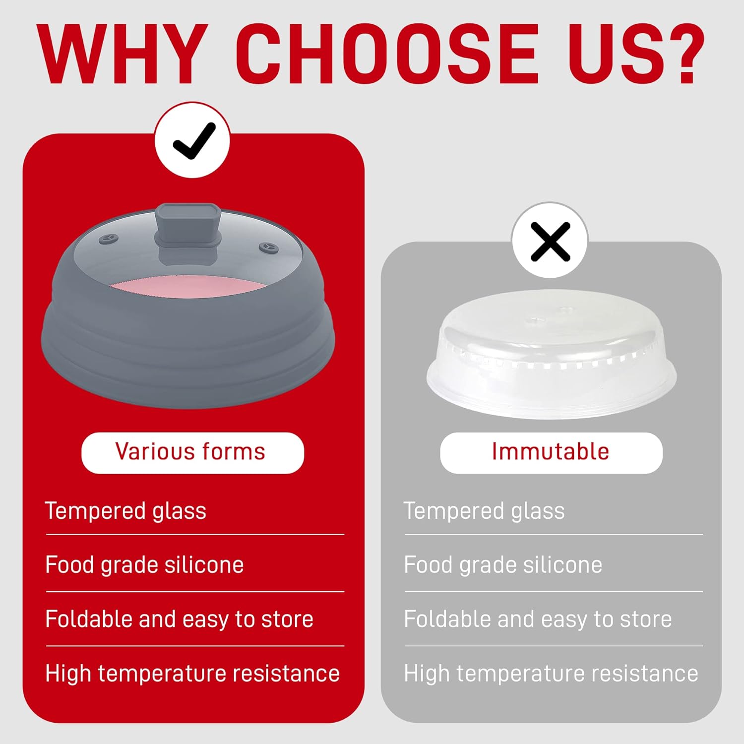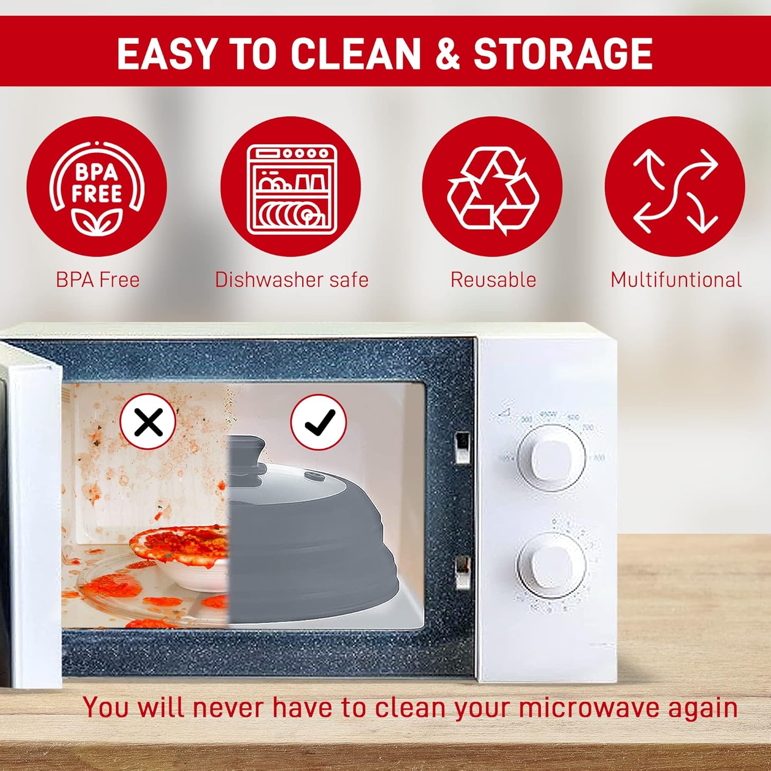 - 👍 VERSATILE MICROWAVE PLATE COVER: This plate guard is collapsible to fit inside a microwave oven. Cover a plate or bowl of food while heating it to avoid splatters. Or, unfold the dome to cover a pot or pan.