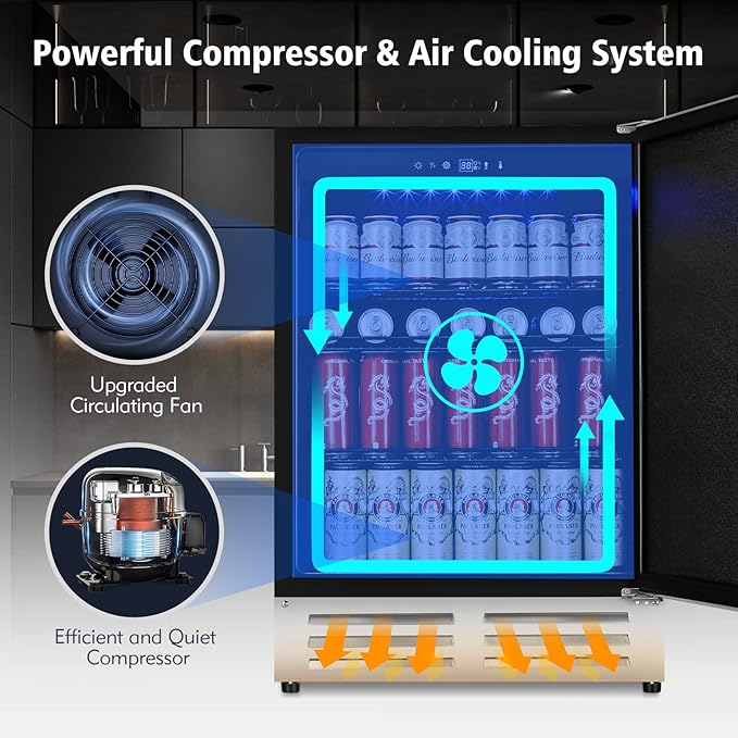 - Rapid Cooling System - Our drink refrigerator equipped with an upgraded compressor effectively provides Fast, Strong, Stable cooling and accurate Humidity, which preserves your drinks in the best condition. And it runs in low Vibration and low noise to make your home more comfortable and environmentally