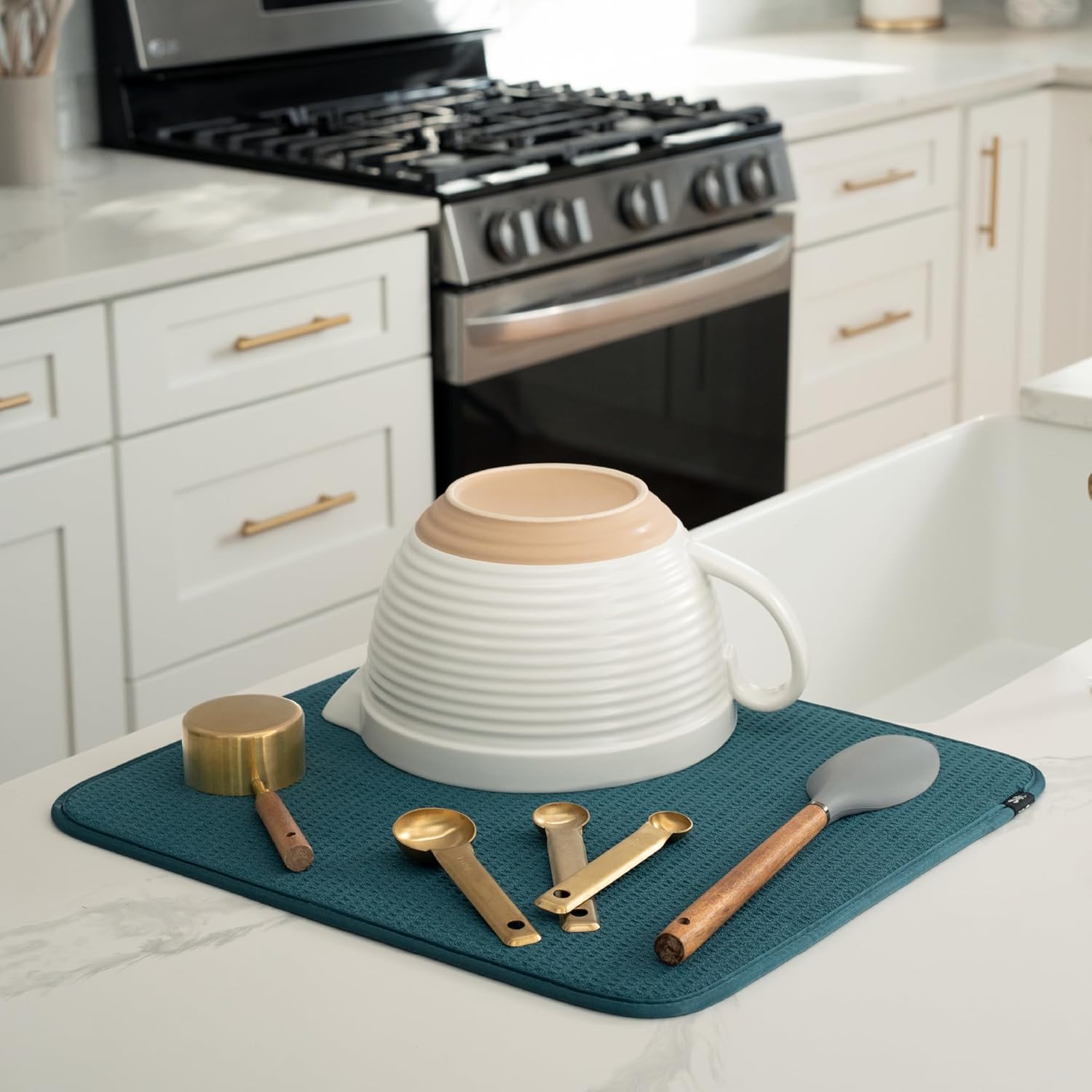 - Dish drying mats for kitchen counter are reusable, machine washable, and easy to store for kitchen organization; durable construction will not chip or break like a stone dish drying mat for kitchen